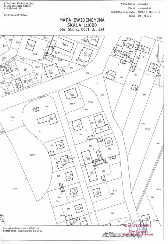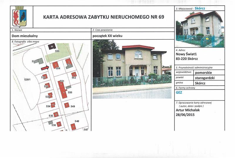 - nieruchomości położonej przy ul. Nowy Świat 1, 83-220 Skórcz, dla której Sąd Rejonowy w Starogardzie Gd. V Wydział Ksiąg Wieczystych (adres: ul. ul. Sobieskiego 6a, Starogard Gdański, 83-200 Starogard Gdański) prowadzi księgę wieczystą o numerze GD1A/00042609/2.