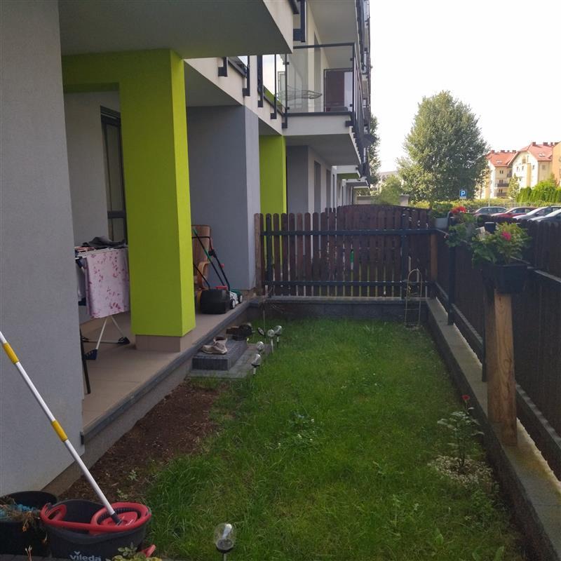 Powierzchnia użytkowa wynosi 52,74 mkw, usytuowany jest na 1 kondygnacji (parterze) budynku posiadającego 5 kondygnacji naziemnych i jedną kondygnację podziemną. W podziemnej części budynku znajdują się miejsca postojowe oraz komórki lokatorskie. Z prawem własności lokalu związany jest udział w wysokości 5274/708972 w nieruchomości wspólnej, którą stanowi grunt oraz części budynku i urządzenia, które nie służą wyłącznie do użytku właścicieli lokali. Lokal składa się z pokoju z aneksem kuchennym, dwóch sypialni, łazienki i przedpokoju. Do lokalu przylega ogródek o powierzchni 9,00 mkw. Ściany pomieszczeń malowane, w łazience wyłożone glazurą na całej wysokości. Na podłogach panele, w łazience płytki. Drzwi do lokalu antywłamaniowe. Drzwi wewnętrzne płytowe z przeszkleniami. Okna PVC, w salonie w części kuchennej stała zabudowa. Grzejniki w pokojach aluminiowe, w łazience grzejnik drabinkowy, oraz prysznic. Przy zejściu do ogródka w części balkonowej podłoga wyłożona płytkami, ogródek trawiasty, oddzielony drewnianym parkanem na betonowej podmurówce o łącznej wysokości około 1,5 metra. Ogólny standard wykończenia lokalu ocenia się jako dobry. Do budynku doprowadzone są sieci: elektroenergetyczna, ciepłownicza, kanalizacyjna, telekomunikacyjna, wodociągowa. Budynek w którym znajduje się przedmiotowy lokal został wybudowany w roku 2021.