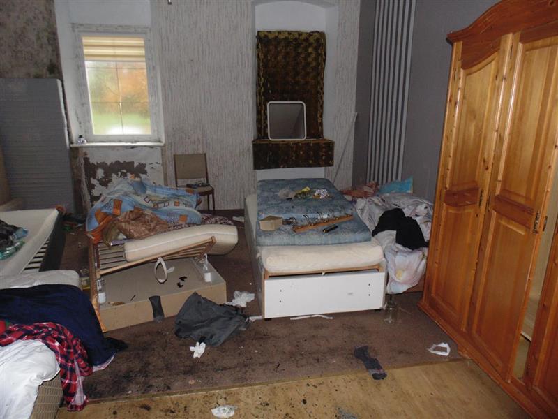 -pokój nr 2 przedzieloną ścianką działkową, w ten sposób wyodrębniono mniejsze pomieszczenie prawdopodobnie przeszłej łazienki.