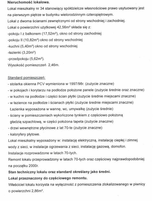 W ciągu dwóch tygodni przed licytacją wolno oglądać wyżej wymienioną nieruchomość w dni powszednie od godz. 08:00 do godz. 16:00. W systemie teleinformatycznym udostępnia się natomiast protokół opisu i oszacowania.