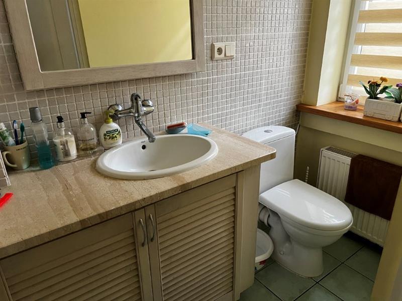 - na podłogach w korytarzu, łazience i kuchni terakota, w pokojach panele podłogowe drewniane