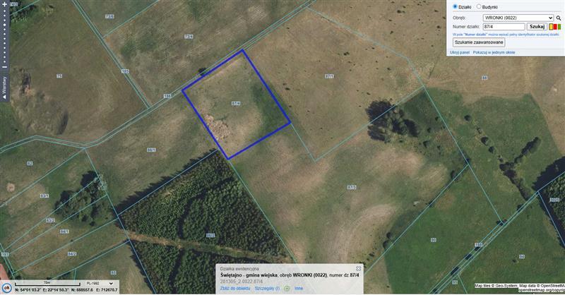 - nieruchomości położonej przy Wronki ., 19-411 Świętajno, dla której Sąd Rejonowy w Olecku IV Wydział Ksiąg Wieczystych (adres: ul. ul. Sembrzyckiego 18, Olecko, 19-400 Olecko) prowadzi księgę wieczystą o numerze OL1C/00003412/3.