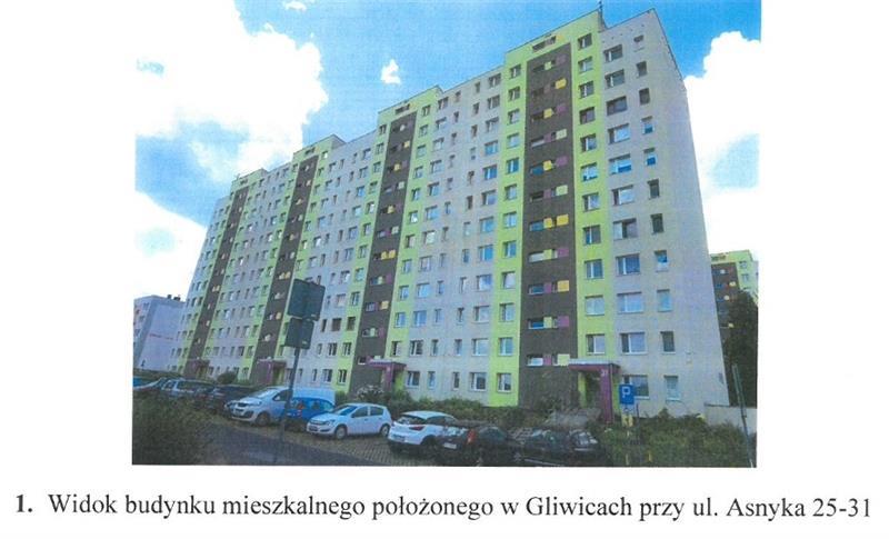 ograniczone prawo rzeczowe - spółdzielcze prawo do lokalu mieszkalnego numer 3 położonego w Gliwicach przy ul. Asnyka 29 będące w zasobach spółdzielni mieszkaniowej im. Żwirki i Wigury w Gliwicach stanowiące własność dłużnika Damian Turczyn. Lokal mieszkalny położony jest na pierwszej kondygnacji (parterze) w budynku mieszkalnym wielorodzinnym (blok mieszkalny) i składa się z 2 pokoi, kuchni, łazienki, wc i przedpokoju. Powierzchnia użytkowa lokalu to 49,87 m2. Lokal nie posiada urządzonej księgi wieczystej