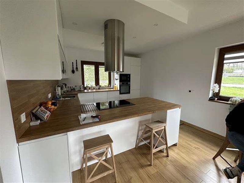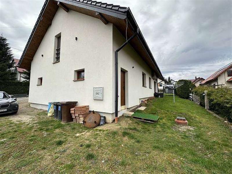 Nieruchomość jest zabudowana budynkiem mieszkalnym jednorodzinnym w zabudowie wolnostojącej, niepodpiwniczonym, składającym się z parteru i poddasza użytkowego. Na parterze znajdują się 3 pokoje, kuchnia, łazienka oraz salon. Na poddaszu znajdują się 3 pokoje oraz łazienka. Powierzchnia użytkowa budynku to 193,7 m2. Budynek wykonany w technologii tradycyjnej - murowanej, kryty dachem dwuspadowym o konstrukcji drewnianej z pokryciem z dachówki ceramicznej powlekanej. Obiekt na rzucie prostokąta. Budynek wyposażony w instalację elektryczną, gazową, wod-kan, ogrzewanie podłogowe oraz dodatkowe instalacje takie jak klimatyzacja i zmiękczacz wody. Ogrzewanie realizowane z pieca gazowego dwufunkcyjnego z zasobnikiem. Rynny i rury spustowe PCV, stolarka okienna PCV trzyszybowa z okleiną drewnopodobną, w części poddasza okna połaciowe. W obrysie budynku znajduje się garaż jednostanowiskowy z bramą wjazdową segmentową oraz pomieszczenie kotłowni. Budynek (wg. stanu na dzień opisu i oszacowania) nie został oddany do użytkowania.