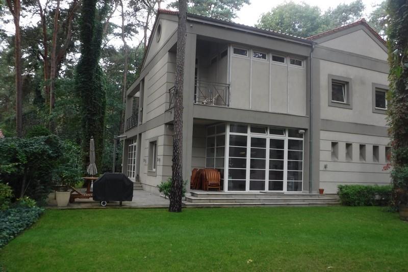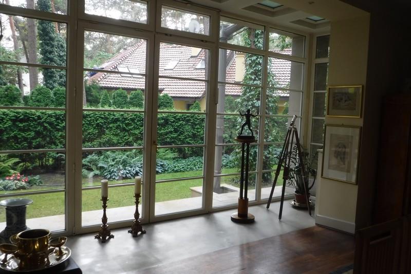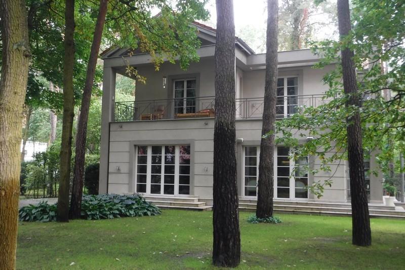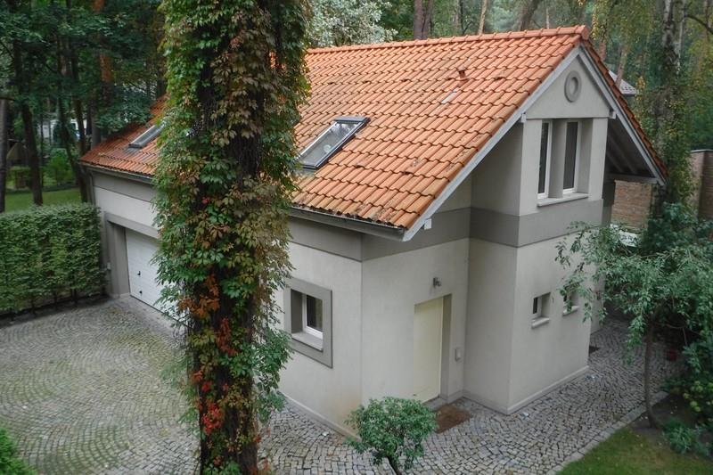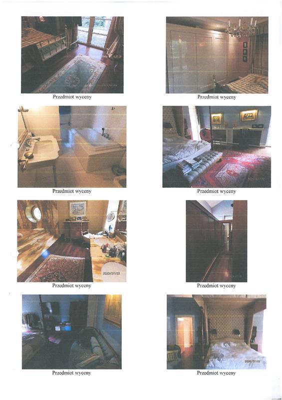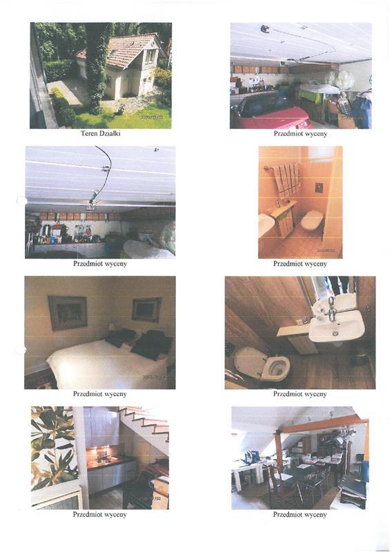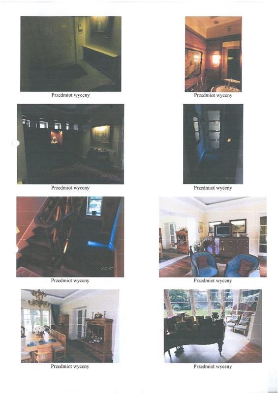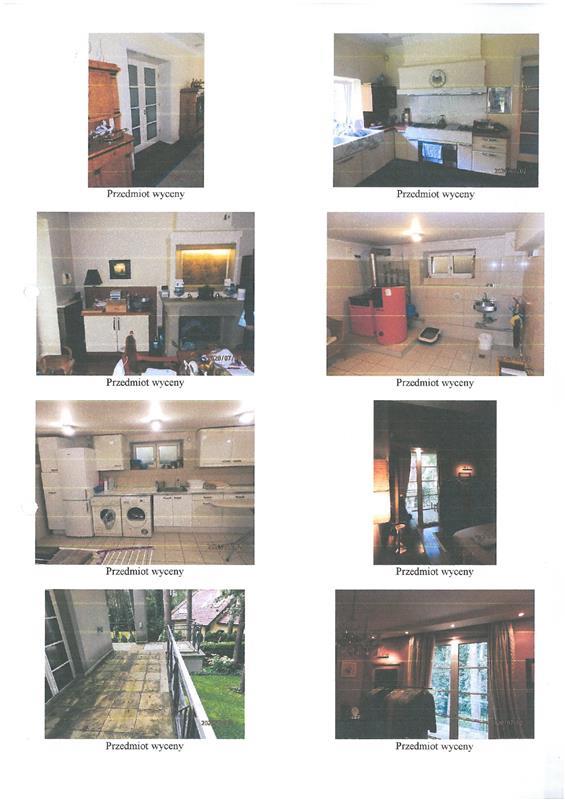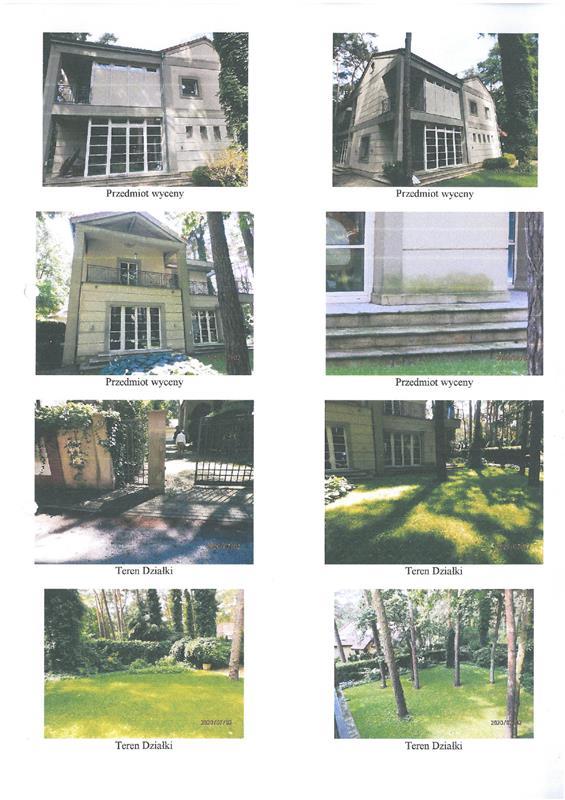 Nieruchomość położona jest w miejscowości Konstancin - Jeziorna. Sąsiedztwo stanowią budynki jednorodzinne w zabudowie wolnostojącej i rezydencjonalnej. Działka położona przy drodze asfaltowej, oświetlonej, ciągi piesze z kostki betonowej. Nieruchomość o kształcie regularnym zbliżonym do prostokąta, teren płaski. Podjazd do budynków, ciągi piesze i opaska wokół budynku z kostki granitowej. Działka ogrodzona. Ogrodzenie od frontu stalowe na słupkach i podmurówce, furtka i brama (otwierana automatycznie) z prętów stalowych, w pozostałej części siatka na słupkach stalowych. Na działce zabudowa w postaci budynku mieszkalnego o dwóch kondygnacjach częściowo podpiwniczonego i budynku garażowego z częścią użytkową. Działka posiada dostęp do następujących mediów z sieci miejskiej: energia elektryczna, wodociąg, kanalizacja, gaz. BUDYNEK MIESZKALNY: Na działce posadowiony budynek wolnostojący, piętrowy, częściowo podpiwniczony. Budynek powstał w 2000r. poprzez rozbudowę i gruntowną modernizację istniejącego budynku z lat 30 XX wieku. Konstrukcja budynku tradycyjna murowana. Stolarka okienna w całym budynku drewniana, tynki zewnętrzne akrylowe, elewacja podświetlana, dach kryty dachówką ceramiczną, obróbki z blachy cynkowo-tytanowej, tarasy i cokoły obłożone piaskowcem. Budynek funkcjonalnie stanowi trzy części część dzienną na parterze, prywatną na piętrze i pomieszczenia gospodarcze w piwnicy. Na parterze: salon połączony z jadalnią, kuchnia z kominkiem, hol, łazienka. Elementy wykończenia parteru stanowią masywne marmury oraz okładziny marmurowe. Pomieszczenia na piętrze posiadają prywatny charakter wykończone luksusowymi materiałami. Główna sypialnia z dostępem do garderoby i pokoju kąpielowego z okładzinami z kamienia naturalnego oraz wysokiej jakości armatury. Na piętrze ponadto dwie duże sypialnie wykończone w wysokim standardzie z wbudowanymi szafami oraz łazienka wykończona naturalnym marmurem. Elementy wykończenia i wyposażenia całego domu wykonane zostały z wysokiej jakości materiałów według indywidualnego projektu: tynki wewnętrzne trójwarstwowe, wykończone sztablaturą, podłogi wykończone naturalnymi okładzinami, kominek wykończony naturalnym piaskowcem. Budynek wyposażony w instalacje: elektryczną, wodociągową, kanalizacyjną, gazową, centralne ogrzewanie zasilane z kotła gazowego zainstalowanego w piwnicy. Powierzchnia zabudowy-189,0m2 (wg kartoteki budynków), powierzchnia zabudowy-207,9m2 (wg projektu technicznego), powierzchnia użytkowa-314,6m2. Na łączną powierzchnię użytkową budynku składają się wielkości powierzchni poszczególnych kondygnacji: piwnice 49,4m2, parter 143,35m2, piętro 121,8m2. BUDYNEK GARAŻOWY Z CZĘŚCIĄ UŻYTKOWĄ: Budynek wzniesiony w 2000r. wolnostojący z poddaszem użytkowym niepodpiwniczony o powierzchni użytkowej 120,2m2. Budynek funkcjonalnie podzielony jest na trzy części: garaż dwustanowiskowy, mieszkanie jednopokojowe z kuchnią i łazienką oraz z osobnym wejściem pomieszczenie biurowe na poddaszu z częścią kuchenną i WC na parterze. Budynek o konstrukcji tradycyjnej murowanej, wyposażony w komplet instalacji: elektryczną, wodociągową, kanalizacyjną i CO zasilane z budynku mieszkalnego. Stolarka okienna drewniana, tynki zewnętrzne strukturalne, pokrycie dachu z dachówki ceramicznej, obróbki z blachy cynkowo-tytanowej. Wskaźniki wielkościowe budynku: powierzchnia zabudowy-90,0m2, powierzchnia użytk.-120,2m2.