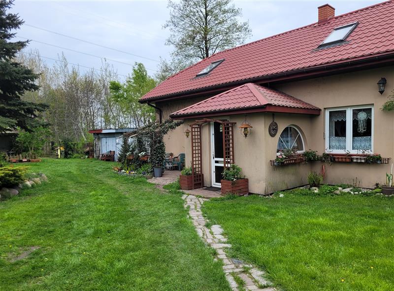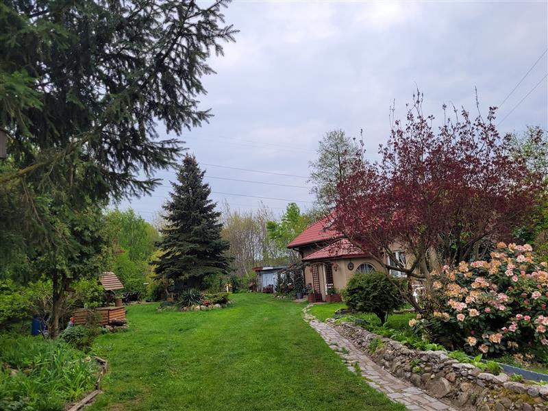 Działka nr 75 - jest zabudowana domem mieszkalnym, parterowym, z poddaszem użytkowym, z dachem krytym blachą, o powierzchni zabudowy 89 m2, a także parterowym budynkiem gospodarczym.