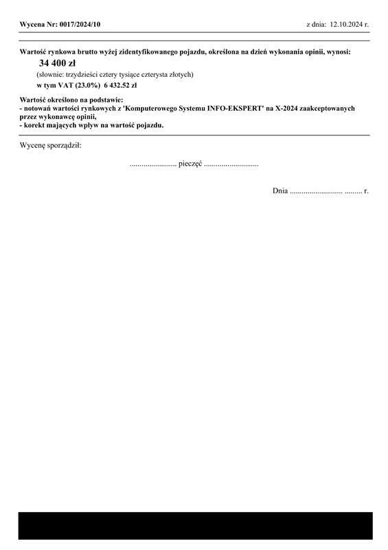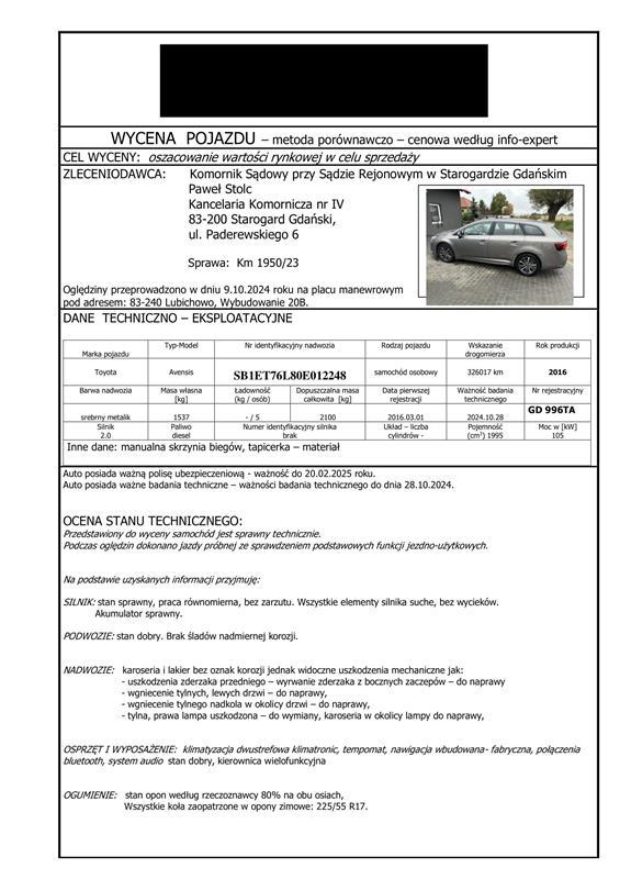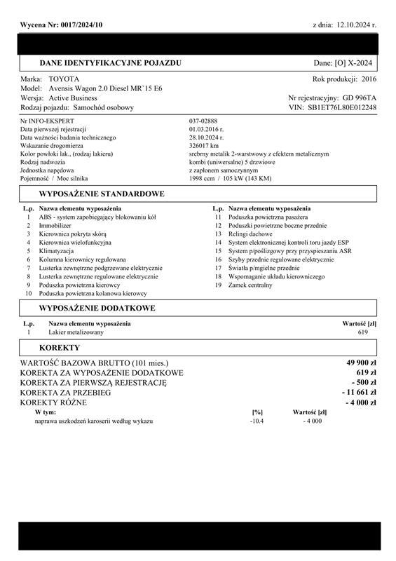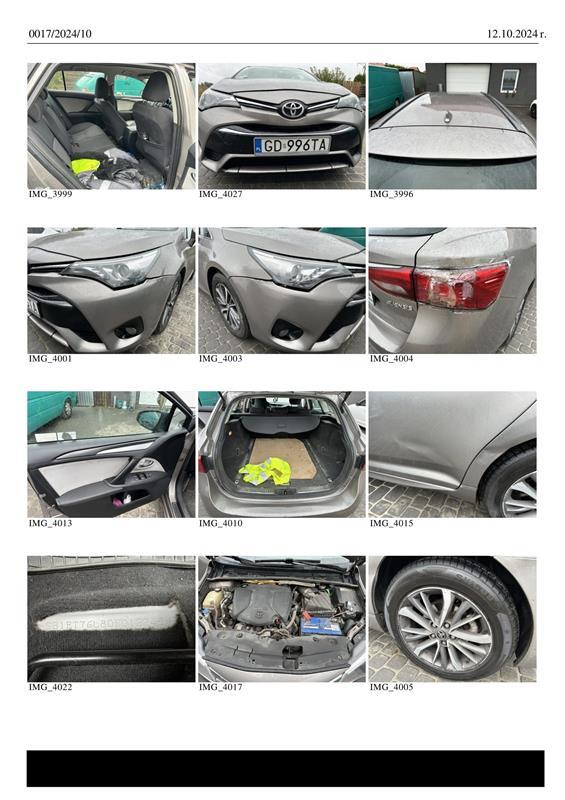 | 2 | samochód osobowy TOYOTA AVENSIS GD996TA SB1ET76L80E012248 | 1 | 34 400,00 zł 27967,48 zł netto + 23% VAT | 17 200,00 zł* | 860,00 zł |