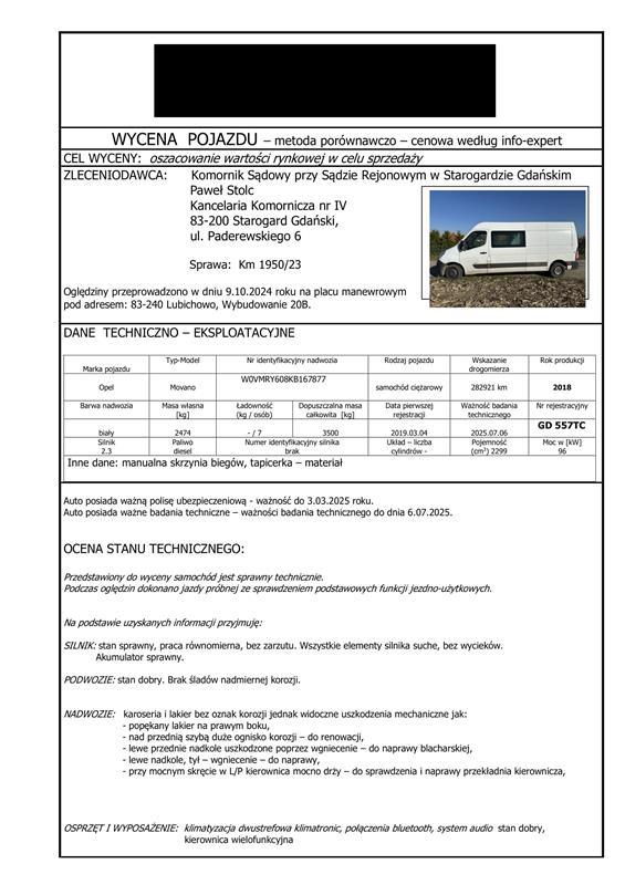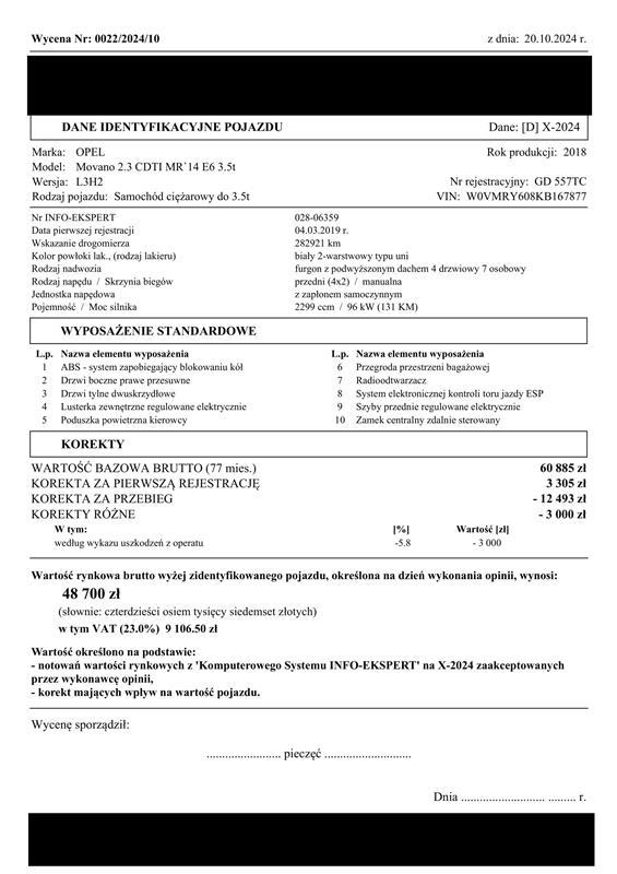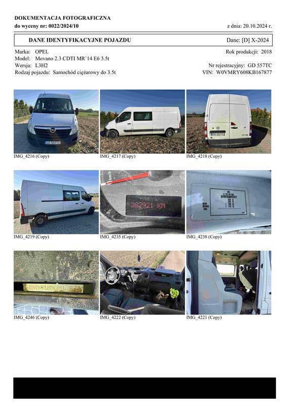 | 3 | samochód ciężarowy Opel Movano 2.3 CDTI MR 14 E6 3.5 t nr rej. GD557TC VIN W0VMRY608KB167877 rok produkcji 2018 | 1 | 48 700,00 zł 39593,50 zł netto + 23% VAT | 24 350,00 zł* | 1 218,00 zł |