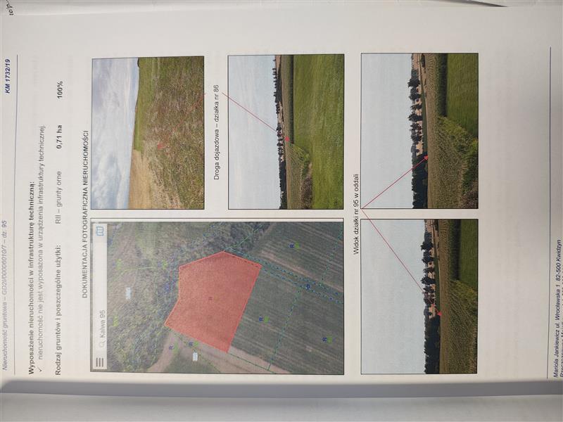 Działka gruntu nr 95 o powierzchni 0,71 ha - niezabudowana. Zgodnie z ewidencją gruntów sklasyfikowana jako grunty orne RII.