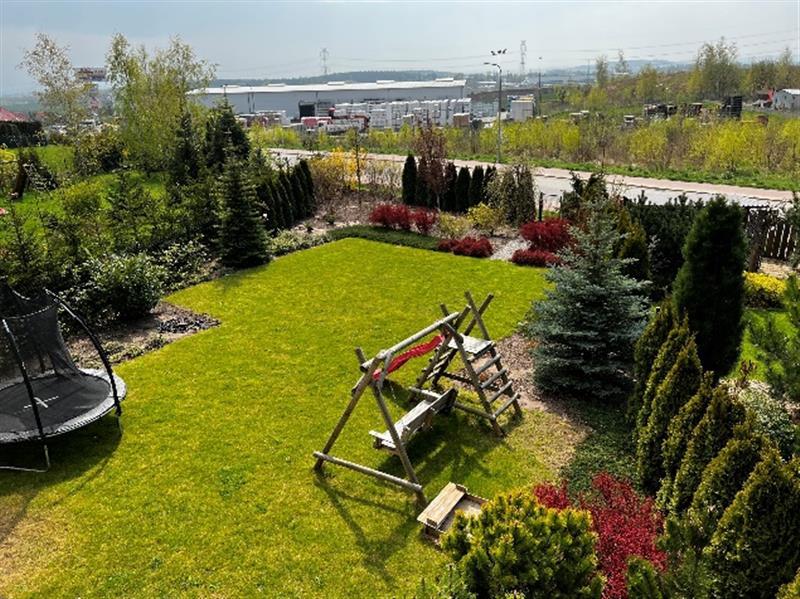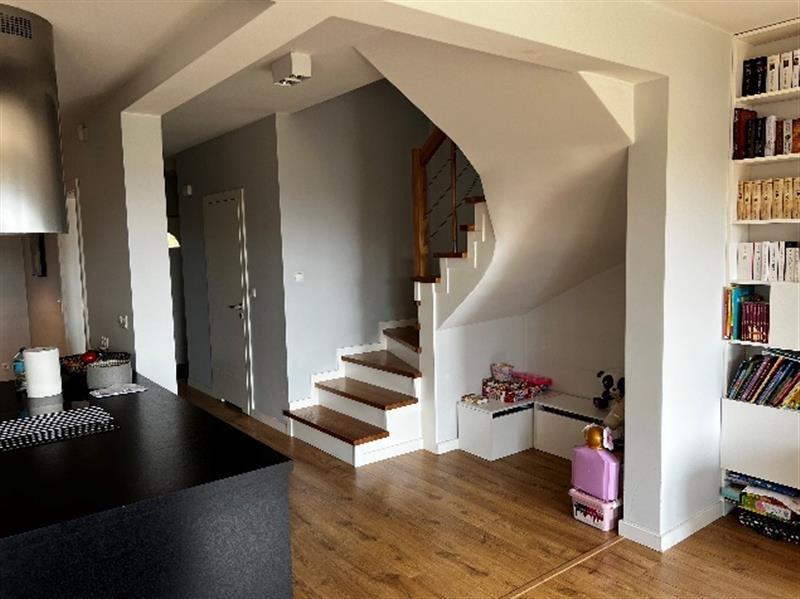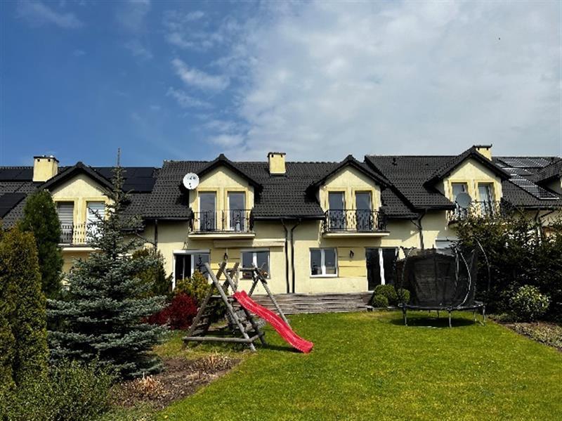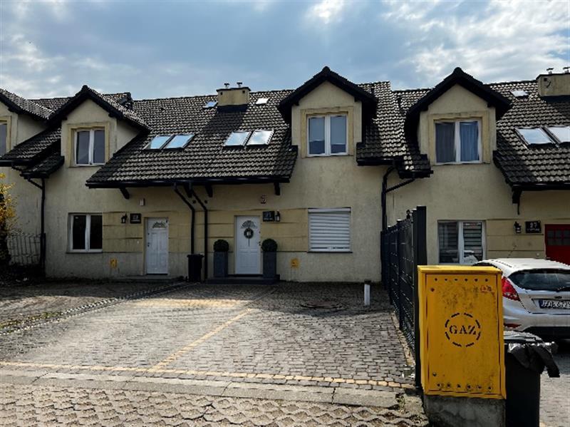 Budynek znajdujący się na działce ma powierzchnię użytkową 111,10m2, został wybudowany w 2010r. i stanowi budynek mieszkalny w zabudowie szeregowej. Budynek 2-kondygnacyjny (parter i poddasze użytkowe); podpiwniczenia - brak; a jego program użytkowy wygląda następująco: na parterze budynku znajduje się kuchnia, salon, łazienka i korytarz, a na piętrze (poddaszu użytkowym) znajdują się 3 pokoje i łazienka. Konstrukcja budynku: fundamenty - ławy fundamentowe żelbetowe; ściany - pustaki ceramiczne; ścianki działowe - pustaki ceramiczne; strop - stropy prefabrykowane; schody - schody wewnętrzne drewniane; dach - więźba dachowa drewniana, dach kryty dachówką ceramiczną. Wykończenie budynku: stolarka - okna PCV, drzwi drewniane; tynki i okładziny zewnętrzne - elewacja - tynki cementowo-wapienne; tynki i okładziny wewnętrzne - tynki cementowo-wapienne, w kuchni i łazience - płytki ścienne, w pozostałych pomieszczeniach ściany malowane farbą emulsyjną; sufity - tynki cementowo-wapienne malowane farbą emulsyjną; posadzki i podłogi - w łazience - płytki podłogowe, w pozostałych pomieszczeniach parkiet drewniany. Budynek posiada dostęp do instalacji: kanalizacja sanitarna, wodociągowa, elektryczna, grzewcza, wentylacji grawitacyjnej. Stopień zużycia technicznego i funkcjonalnego budynku wynika z wieku budynku i zastosowanej technologii wykonawstwa i jest typowy dla budynku o bardzo dobrym stopniu konserwacji i remontów.