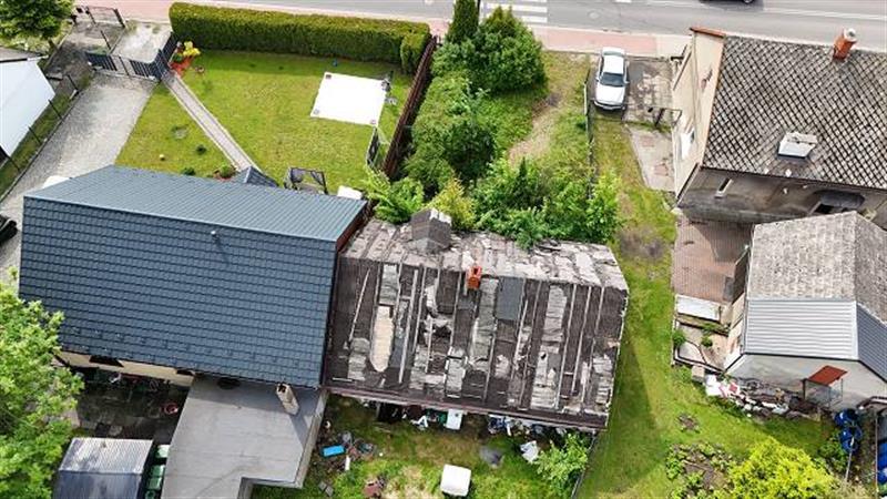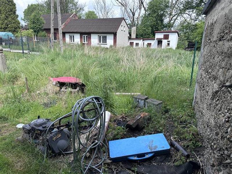 Nieruchomość składa się z działki nr 3425 o powierzchni 94 m2, działki nr 613/2 o powierzchni 3a 54m2, działki nr 3427 o powierzchni 6a 69m2. Działka nr 3425 zabudowana budynkiem mieszkalnym jednorodzinnym w zabudowie wolnostojącej,płaska, kształt foremny, regularny zbliżony do prostokąta. Działka nie przylega do drogi publicznej i nie posiada do niej prawnie zapewnionego dostępu. Budynek nie jest ujawniony na mapie zasadniczej. Budynek mieszkalny-Powierzchnia użytkowa: 56,8 m2 . Budynek mieszkalny jednorodzinny w zabudowie wolnostojącej o konstrukcji mieszanej, częściowo murowany z cegły oraz częściowo o konstrukcji drewnianej z bali, składający się z parteru oraz strychu i częściowego podpiwniczenia. Obiekt kryty dachem dwuspadowym, nieocieplony oraz nieszczelny. Elewacja częściowo ocieplona oraz obłożona suchym tynkiem. Budynek podzielony jest na 2 osobne lokale mieszkalne posiadające osobne wejścia. Do jednego lokalu dostęp od południowej strony budynku a do drugiego lokalu dostęp od północnej strony budynku.Podstawowe elementy konstrukcyjne. Fundamenty: murowane.Ściany: murowane z cegły oraz drewniane z bali, Stropy: sklepienie Kleina oraz drewniane belkowe. Dach: dwuspadowy o konstrukcji drewnianej z lukarną. Elementy wykończenia wnętrz:Ściany: ściany malowane farbami emulsyjnymi, częściowo obłożone flizami, płytkami oraz cegłą ozdobną, miejscami ubytki w tynku, ściany zawilgocone z widocznym zagrzybieniem, Sufity: częściowo obłożone deskami, panelami, płytami GK, miejscami wykonany stelaż pod sufit podwieszany, zawilgocone z widocznym zagrzybieniem. Stolarka okienna: stolarka okienna PCV. Stolarka drzwiowa: płytowa częściowo z przeszkleniem. Podłogi i posadzki: częściowo panele podłogowe, częściowo drewniana – zbutwiała, częściowo flizy, wykładziny oraz brak wykończeń posadzek. Elewacja i roboty zewnętrzne: Elewacja: częściowo ocieplona i częściowo obłożona suchym tynkiem. Pokrycie dachu: papa nieszczelna. Rynny i rury spustowe: PCV. Komin: murowany z cegły. Instalacje: instalacje elektryczna, instalacja wodociągowa, instalacja kanalizacyjna, CW z pieców typu koza i elektryczne. Stan techniczny: do remontu generalnego. Standard użytkowy: do remontu generalnego z uwagi na nieszczelny dach, zawilgocone ściany oraz podłogi, widoczne zagrzybienie. Aktualne użytkowanie: budynek niezamieszkały, w stanie do remontu generalnego. Działka nr 613/2 o regularnym kształcie, niezabudowana, o znacznym spadku terenu w kierunku północnym oraz ze skarpą, położona w dalszej linii zabudowy do ul. Zwycięstwa, nie posiada dostępu do drogi publicznej, zieleń samoistna, trawy, drzewa, krzewy. Działka nr 3427 o nieregularnym i nieforemnym kształcie, płaska, niezabudowana, położona w dalszej linii zabudowy do ul. Zwycięstwa, nie posiada dostępu do drogi publicznej. zieleń samoistna, trawy, drzewa liściaste, iglaste, krzewy,częściowe ogrodzenie – siatka stalowa rozpięta między stalowymi słupkami.Dojazd: działki nie posiadają prawnie zapewnionego dostępu do drogi publicznej oraz nie przylegają bezpośrednio do drogi publicznej oraz nie są ujawnione żadne prawa i służebności dojazdu w w/w KW.Uzbrojenie: zgodnie z mapą zasadniczą działka nr 3425 nie jest przyłączona do żadnej sieci uzbrojenia. W trakcie oględzin nieruchomości stwierdzono, że do budynku doprowadzona jest sieć elektroenergetyczna oraz woda i kanalizacja. Przez działkę ew. nr 3427 przebiegają sieci: gazowa, elektroenergetyczna, kanalizacyjna, ciepłownicza. Działka ew. nr 613/2 jest nieuzbrojona.