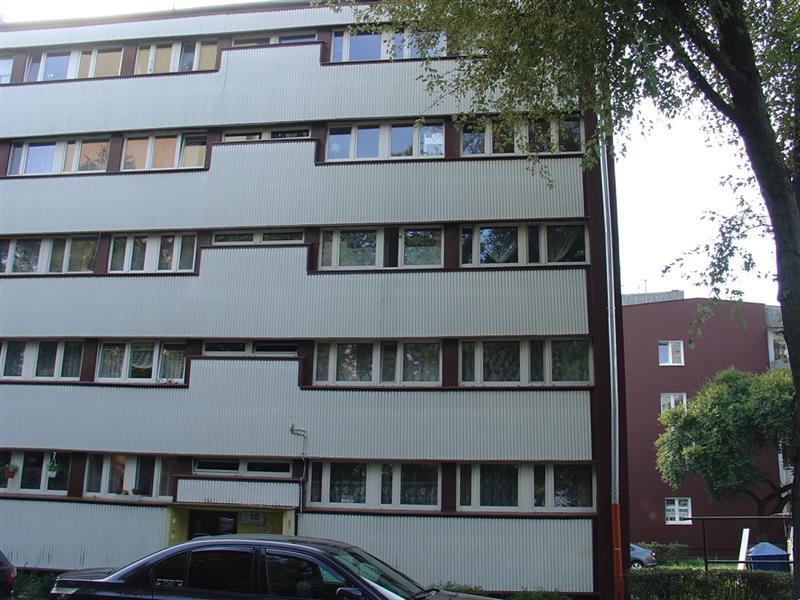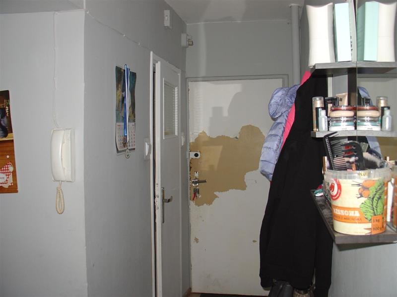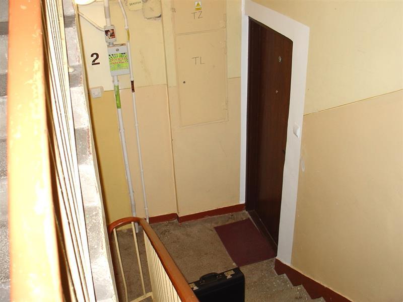 Mieszkanie jest w przeciętnym stanie technicznym. Na podłodze w pokojach wylewka i panele podłogowe, w kuchni wylewka i terakota, w łazience terakota i glazura, tynki wapienne i gipsowe. Stolarka okienna w białych profilach z PCV. Stolarka drzwiowa płycinowa. Łazienka z WC w przeciętnym stanie – nieobudowana wanna metalowa i sedes z dolnopłukiem. Armatura kuchenna i łazienkowa w przeciętnym stanie.