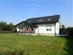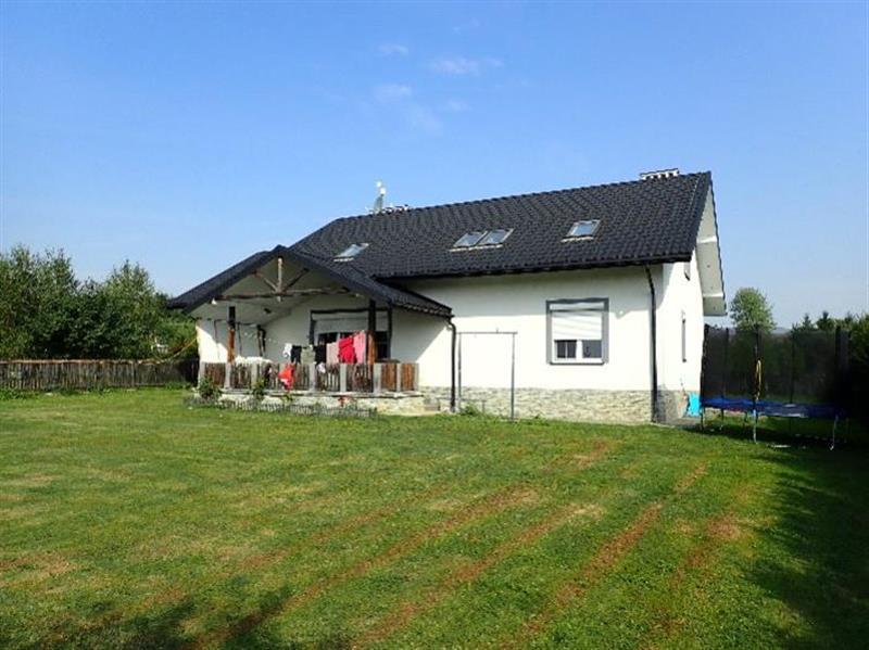 Nieruchomość gruntowa oznaczona jako dz. ew. nr 821/9 oraz dz. ew. nr 821/7 zlokalizowana w miejscowości Jasionów gmina Haczów, na których zabudowa stanowi całość użytkowo-gospodarczą. Z załączonej mapy zasadniczej wynika, że południowa ściana budynku zlokalizowanego na działce gruntowej nr ew. 821/9 częściowo posadowiona jest na działce gruntowej nr ew. 821/7 i przy jej północnej granicy. Szczegółowa lokalizacja jest b. dobra, co wynika z niewielkiej odległości od centrum miejscowości i miasta Brzozowa lokalnie jednego z większych ośrodków gospodarczych. Teren działki równinny, utwardzony kostką do wejścia głównego i garażu, stanowi jednocześnie płytkę odbojową budynku w pozostałej części teren obsiany trawą i pojedynczymi nasadzeniami drzew i krzewów ozdobnych. Nieruchomość we wschodniej granicy posiada bezpośredni dostęp do dość wąskiej drogi o nawierzchni asfaltowej, która łączy się z drogą wojewódzką. Obecnie podjazd do nieruchomości od północnej strony przez sąsiednią działkę ewidencyjną nr 821/8 na której posadowiony jest warsztat samochodowy. Położenie w sąsiedztwie terenów zabudowy jednorodzinnej, usługowej (warsztat) oraz gruntów niezabudowanych. Działki na której posadowiony jest budynek mieszkalny stanowi grunt o sumie powierzchni 0,1661 ha na terenie równinnym, w kształcie wielokątnym o dobrych warunkach geotechnicznych. Teren częściowo ogrodzony tj. w granicy wschodniej, południowej i zachodniej i tam dodatkowo obsadzony drzewami i krzewami ozdobnymi. Wschodnia część nieruchomości odgrodzona drewnianym płotem, stanowiła zgodnie z oświadczeniem dłużnika staw rybny, w dniu oględzin niecka nieznacznie wypełniona deszczówką, stanowi wg rejestru gruntów następujące rodzaje użytków: - dz. ew. nr 821/7 - grunty orne, klasa bonitacji RIIIb, pow. użytkowa 0,0994 ha; Razem pow. użytkowa: 0,0994 ha. - dz. ew. nr 821/9 - grunty orne, klasa bonitacji RIIIb, pow. użytkowa 0,0182 ha; grunty rolne zabudowane, klasa bonitacji Br-RIIIb, pow. użytkowa 0,0485 ha; Razem pow. użytkowa: 0,0667 ha. Budynek mieszkalny murowany, dwukondygnacyjny z poddaszem użytkowym, wybudowany końcem pierwszej dekady lat dwutysięcznych. Budynek z garażem w bryle budynku, kryty blachodachówką, wykonano rynny i rury spadowe oraz podbitkę okapową z oświetleniem punktowym. W skład pomieszczeń parteru wchodzą: wiatrołap, dwa pokoje, łazienka wraz z toaletą, salon z kominkiem i otwartą kuchnią skąd istnieje możliwość komunikacji przez pomieszczenie spiżarki do garażu oraz dodatkowo przez zawieszone ażurowe schody do pomieszczeń poddasza. Wejścia do pomieszczeń parteru zlokalizowane w części północnej oraz drugie w części południowej przez zadaszony taras. W skład pomieszczeń piętra wchodzą: 4 pokoje, łazienka wraz z toaletą oraz przejściowy salon. Na poddaszu w każdym pokoju znajdują się okna z czego sześć jest dachowych. Nieruchomość uzbrojona jest w dostęp do sieci elektroenergetycznej, gazowej i wodno-kanalizacyjnej oraz wody ze studni głębinowej. Centralne ogrzewanie według oświadczenia dłużnika zasilane z kotłowni budynku warsztatu usytuowanego na działce sąsiedniej podobnie jak woda ze studni na działce sąsiedniej. Pow. zabudowy: 176 m2. Budynek zamieszkały.