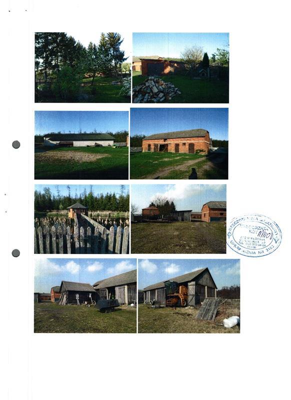W skład nieruchomości wchodzą:działka gruntu nr ewidencyjny 801 o powierzchni 22,6060 ha, działka gruntu nr ewidencyjny 869 o powierzchni 0,6211 ha .Działka gruntu nr 801 od strony drogi na powierzchni 0,9032 ha zabudowana budynkiem mieszkalnym, wolnostojący, niski - częściowo podpiwniczony i wysoki parter, z przybudówką od strony podwórza, oraz budynki gospodarcze, szklarnia, altana oraz na powierzchni 21,7028 ha użytkowana rolniczo. Rodzaj klasoużytków: grunty orne RIVa o pow. 1,1854 ha, grunty orne RIVb o pow. 5,4154 ha, grunty orne RV o pow,. 1,6669 ha, rowyW-PsV o pow. 0,0463, pastwiska trwałe PsV o pow. 8,7907 ha, grunty rolne zabudowane Br-PsV o pow. 0,9032 ha, grunty zadrzewione i zakrzewione na użytkach rolnych Lzr-PsV o pow. 0,3387 ha, grunty pod stawami Wsr-PsV o pow. 0,2351 ha, lasy i grunty leśne LsV o pow. 3,0430 ha, nieużytki N o pow. 0,9813 ha. Na działce stwierdza się podstawowe zabiegi agrotechniczne. Wskaźnik glebowo-bonitacyjny WBG = 0,7173. Rodzaj uprawy: rośliny jednoroczne oraz użytki zielone (łąki, pastwiska). Lasy na powierzchni 3,0430 ha. Grunt pod stawem przydomowy na powierzchni 0,2351 ha - dla własnych potrzeb. Działka nr 869 o pow. 0,6211 ha wykorzystywane rolniczo. Stwierdza się podstawowe zabiegi agrotechniczne. Wskaźnik glebowo-bonitacyjny WBG = 0,2568. Rodzaj uprawy: łąka koszona. Rodzaj klasoużytków: rowy W ŁIV o pow. 0,0124 ha; ŁIV o pow. 0,1503 ha; rowy W-ŁV o pow. 0,0251ha, łąki trwałe ŁV o pow. 0,3044 ha, rowy W-ŁIV o pow. 0,0100 ha, łąki trwałe ŁVI o pow. 0,1189 ha. (Uwaga: prawo dożywocia wpisane w dziale III nie jest aktualne - wygasło).