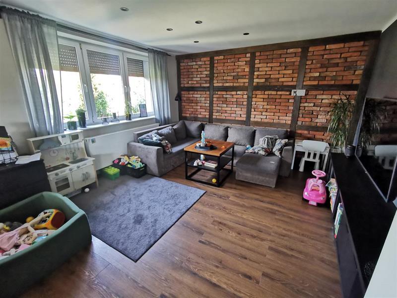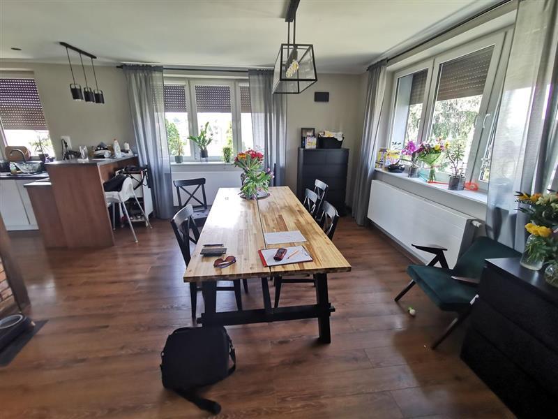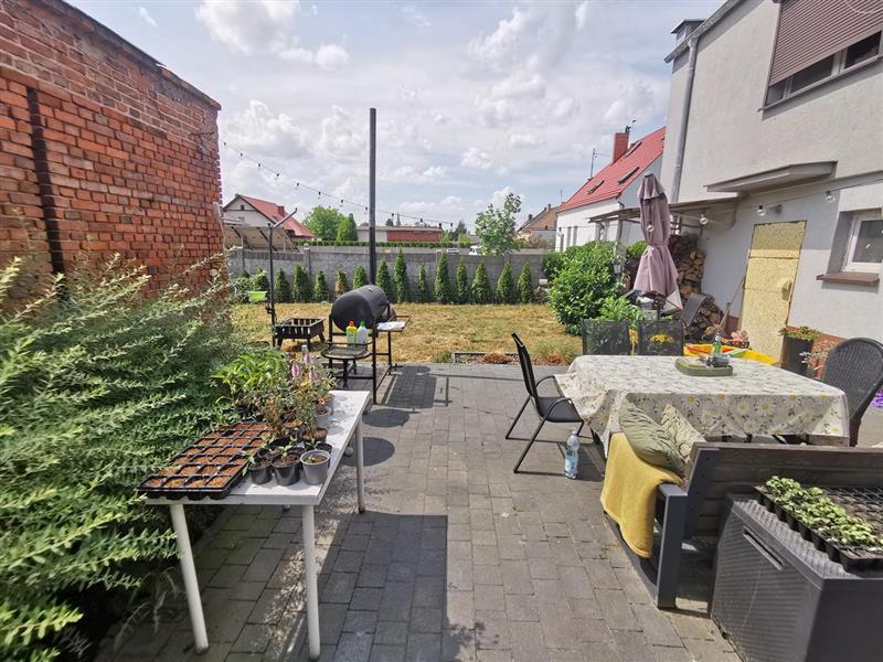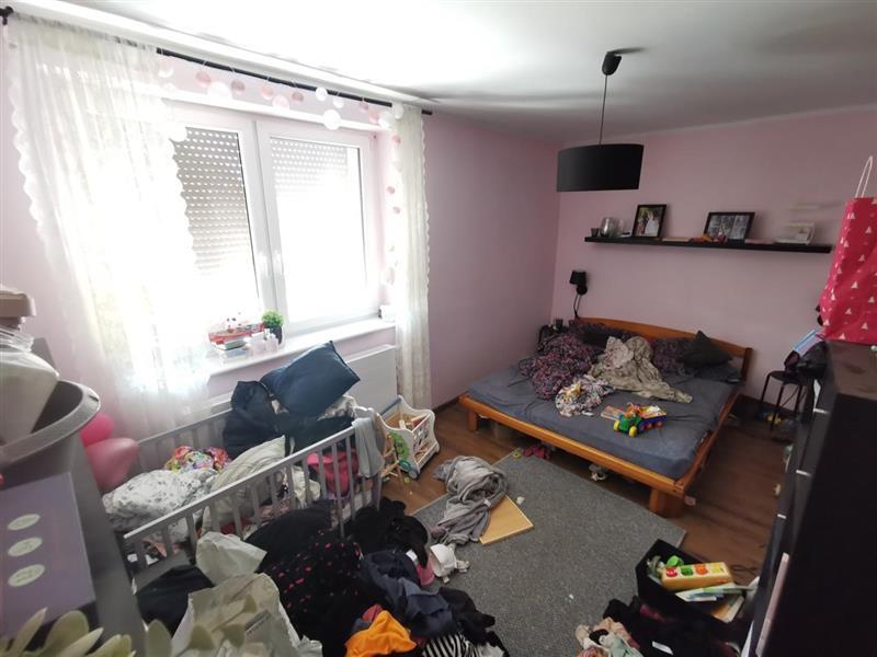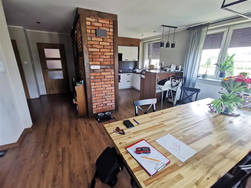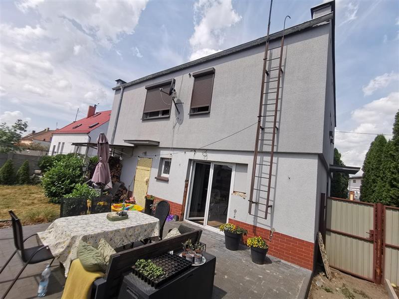 Budynek mieszkalny jednorodzinny, wolnostojący, dwukondygnacyjny, bez podpiwniczenia wybudowany został w latach 70-tych XX wieku. W parterze ma wbudowany garaż jednostanowiskowy. Budynek wyposażony jest w instalację wodno-kanalizacyjną, elektryczną, gazową, c.o. i c.w.u. zasilane z kotła gazowego IMMERGAS. Budynek w 2019 r. przeszedł modernizację, dokonano wymiany instalacji. W budynku przeprowadzono wczesną termomodernizację (około 15-20 lat temu ocieplono budynek styropianem o grubości 8 cm i wymieniono okna na PCV z szybami zespolonymi). Okna na I piętrze są wyposażone w rolety zewnętrzne. Część parterowa ma powierzchnię użytkową 65,63 m2, I piętro ma powierzchnię użytkową 73,88 m2. Łączna powierzchnia użytkowa budynku mieszkalnego wynosi 139,51 m2. Budynek w części mieszkalnej (I piętro) znajduje się w bardzo dobrym stanie technicznym. Podczas przeprowadzonej w 2019 r. modernizacji przeprowadzono gruntowy remont tej części budynku. Standard wykończenia tej części budynku jest wysoki. W części parterowej wykonano remont tylko części korytarzowej i klatki schodowej, wymieniono także drzwi wejściowe. Pomieszczenia: garażowe, pokój i pomieszczenia gospodarcze nie zostały zmodernizowane. Budynek znajduje się w dobrym stanie technicznym.