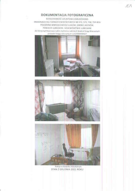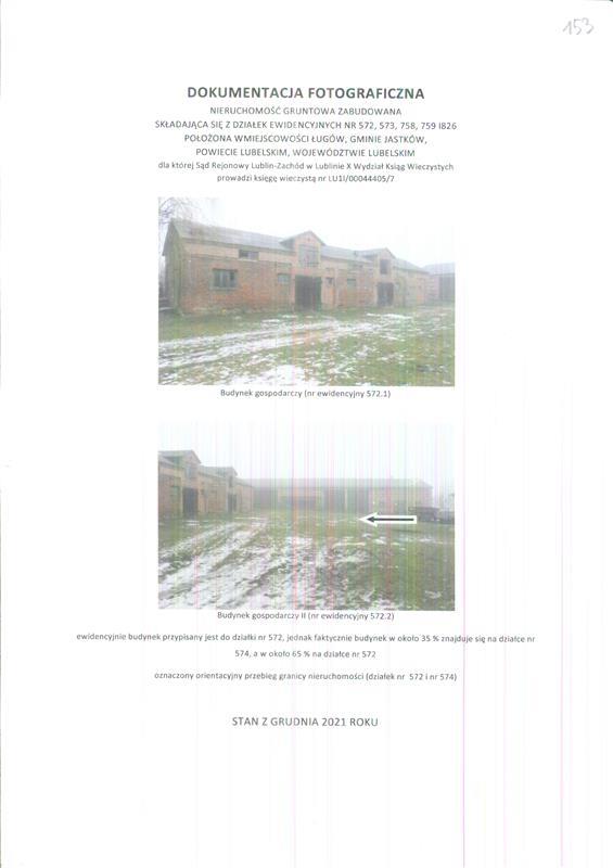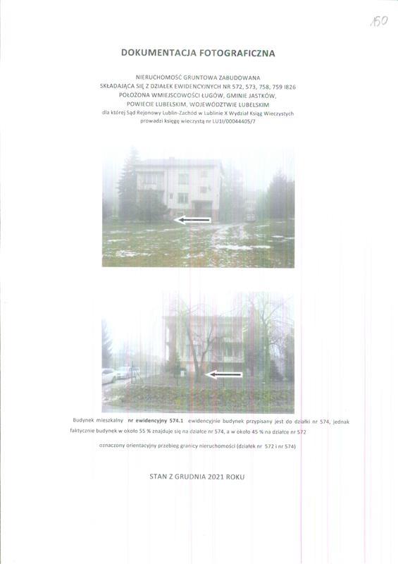 - nieruchomości położonej przy Działki ewidencyjne: nr 572, 573, 758, 759, 826 -,Ługów, 21-002 Jastków, dla której Sąd Rejonowy Lublin-Zachód w Lublinie X Wydział Ksiąg Wieczystych (adres: ul. ul. Konrada Wallenroda 4d, Lublin, 20-607 Lublin) prowadzi księgę wieczystą o numerze LU1I/00044405/7.