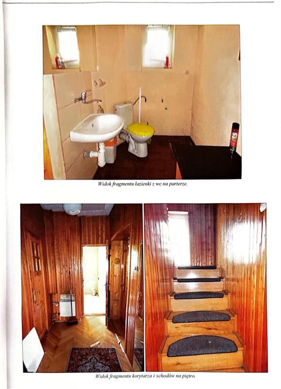 Na nieruchomości znajduje się jednorodzinny budynek mieszkalny, wzniesiony na planie kwadratu. Budynek wzniesiony w latach siedemdziesiątych XX wieku. Budynek dwukondygnacyjny z poddaszem nieużytkowym. Łączna powierzchnia użytkowa wynosi 111,49 m2. Do zachodniej ściany budynku mieszkalnego został dobudowany jednokondygnacyjny garaż o pow. zabudowy 30 m2. Oba budynki wzniesione w technologii tradycyjnej, murowanej z elementów drobnowymiarowych. Stropy betonowe, dach czterospadowy w konstrukcji drewnianej, pokrycie blachą dachówkopodobną. Stolarka okienna dwuszybowa w ramach z pcv, stolarka drzwiowa drewniana, typowa. Podłogi wyłożone klepką parkietową, częściowo płytki ceramiczne. Na parterze budynku zlokalizowana jest funkcja dzienna z przestronnym salonem, z wyjściem na teren nieruchomości. Na piętrze znajdują się trzy pokoje oraz łazienka z wc i komunikacja. W podpiwniczeniu zlokalizowano kotłownię i szereg pomieszczeń gospodarczych.