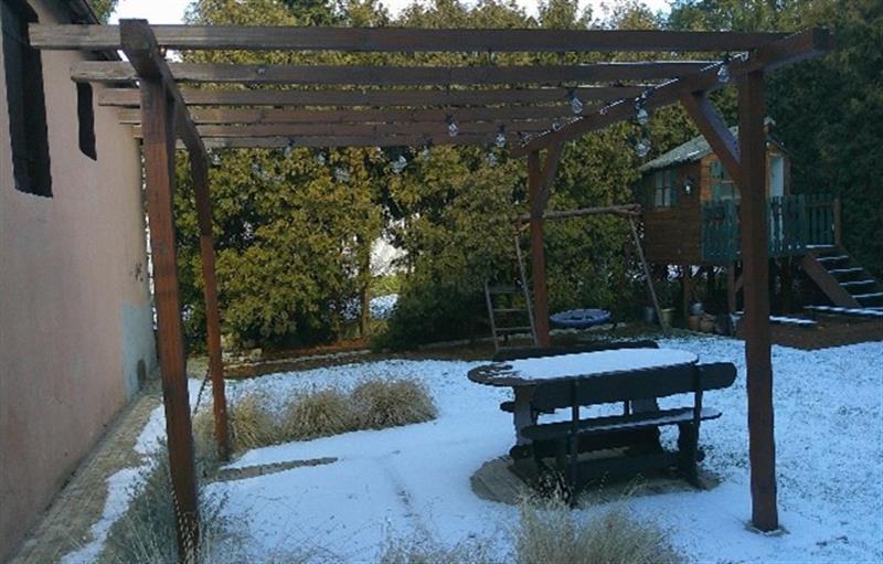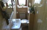 Budynek mieszkalny jednorodzinny w zabudowie wolnostojącej. Budynek dwukondygnacyjny wybudowany w technologii tradycyjnej murowanej w latach 60/70 XX w. Fundamenty i stropy żelbetowe. Ściany zewnętrzne murowane z pustaka betonowego, elewacje tynkowane (nieocieplone). Dach kopertowy konstrukcji drewnianej pokryty papą termozgrzewalną, rynny i rury spustowe z blachy cynkowanej malowane proszkowo. Stolarka okienna PCV z szybami zespolonymi. Wejście do budynku od strony wschodniej przez dobudowany ganek, drzwi zewnętrzne drewniane częściowo przeszklone. Powierzchnia użytkowa budynku mieszkalnego wynosi 149,10 m2. (powierzchnię użytkową parteru oraz piętra przyjęto na podstawie pomiarów własnych wykonanych podczas oględzin). Powierzchnia zabudowy według danych z rejestru gruntów wynosi łącznie 104 m2. Ustalono, iż budynek mieszkalny składa się z następujących pomieszczeń: Parter: ganek, holl, WC, salon, kuchnia, taras, spiżarka, schody. Piętro: holl, łazienka z WC, 3 pokoje. Budynek z pełnym podpiwniczeniem, składająca się z 4 pomieszczeń gospodarczych o wysokości powyżej 1,70 m, w jednym z pomieszczeń gospodarczych zainstalowany kocioł węglowy centralnego ogrzewania z podajnikiem na ekogroszek. Ściany piwnic tynkowane, posadzki wyłożona płytkami lastryko. Stan techniczny budynku mieszkalnego – dobry, zużycie techniczne na poziomie 25%, stwierdzono zużycie techniczne niektórych elementów pomieszczeń budynku, które wymagają remontu w zakresie elementów wykończeniowych oraz odświeżenia powłok malarskich. Ściany zewnętrzne budynku wymagają termomodernizacji. Stan użytkowy pomieszczeń – przeciętny – pomieszczenia z wejściem z ganku z dodatkowym hollem, w części przechodnie, zabudowa typowa dla budynków mieszkalnych jednorodzinnych z lat 60/70-tych XX w. Standard wykończenia budynku mieszkalnego w części parteru określono jako wysoki, wykorzystano materiały ponad średniej klasy. W części piętra do wykończenia wykorzystano materiały przeciętnej jakości, w łazience płytki i biały montaż z lat 90-tych XX w. Z uwagi na zastosowanie różnych materiałów wykończeniowych ogólny standard wykończenia budynku określono jako średni. Budynek garażu: W północno-zachodniej części działki posadowiony budynek niemieszkalny transportu i łączności, o jednej kondygnacji nadziemnej wraz z poddaszem, wybudowany w technologii tradycyjnej, murowany, dach konstrukcji drewnianej kryty papą, rynny i rury spustowe PCV. W garażu posadzki betonowe wraz z kanałem naprawczym, ściany wewnątrz tynkowane, brama wjazdowa podnoszona konstrukcji stalowej. Elewacje budynku tynkowane z widocznymi śladami pęknięć. Budynek wyposażony w instalację elektryczną (3-fazowa). Powierzchnia użytkowa budynku według pomiarów własnych wynosi łącznie 26,63 m2. Powierzchnia zabudowy zgodnie z danymi ewidencyjnymi wynosi łącznie 31 m2. Mała architektura: Na działce znajdują się obiekty małej architektury w postaci pergoli konstrukcji drewnianej posadowionej na posadzce z kostki brukowej betonowej, dodatkowo domek ogrodowy dla dzieci.