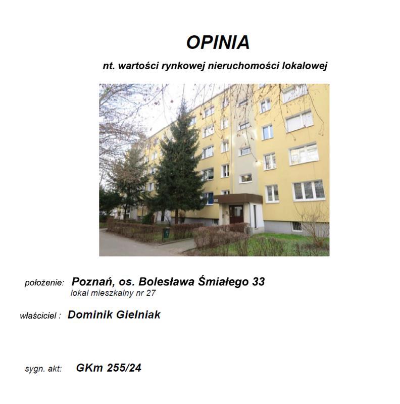 - lokalu mieszkalnego, którego właścicielem jest Dominik Gielniak położonego przy os. Bolesława Śmiałego 33/27, 60-682 Poznań, dla którego Sąd Rejonowy Poznań – Stare Miasto w Poznaniu V Wydział Ksiąg Wieczystych (adres: ul. ul. Młyńska 1a, Poznań, 61-729 Poznań) prowadzi księgę wieczystą o numerze PO1P/00247964/2.