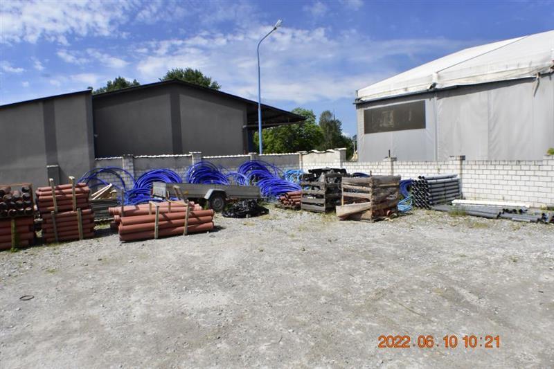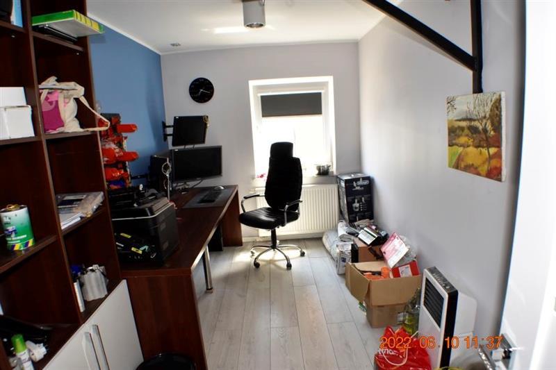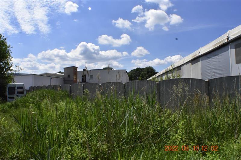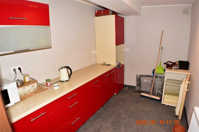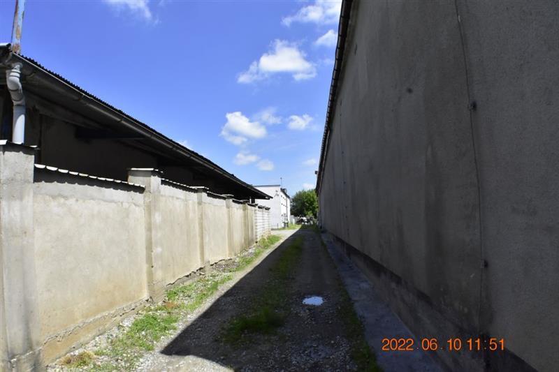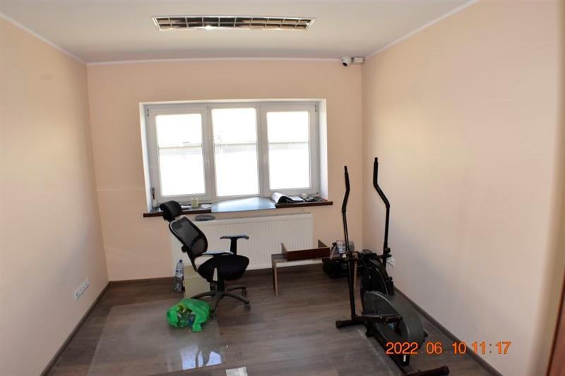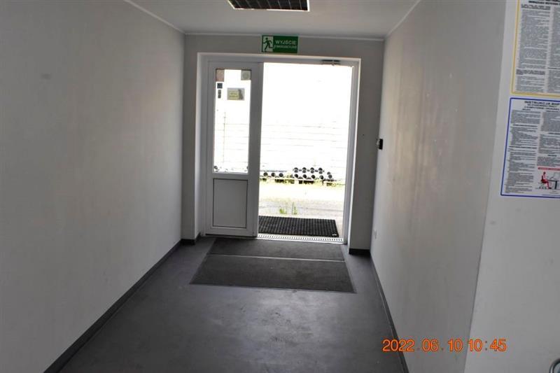 Budynek magazynowo-biurowy: obiekt wolnostojący, niepodpiwniczony, dwukondygnacyjny i przykryty płaskim dachem. Pow. zabud. 288m2, pow. całkowita 576m2, pow. użytk. 402,5m2,wys. pom. 2,36-2,47m. Budynek posiada cztery wejścia: dwa na parter oraz dwa na piętro. Struktura budynku : parter: wejście 18,1m2, magazyn 111,7m2, pom. socj. 7,7m2, wc 6,7m2, biuro I 22,3m2, kotłownia 10,9m2, biuro II 17,2m2 - razem 194,6m2; piętro: biuro III 11,1m2, magazyn II 65,4m2, pom. biurowe I 7,8m2, pom.biurowe II 20,7m2, łazienka 8,3m2, warsztat 10,7m2, pom. biurowe III 23,8m2, sala + kuchnia + korytarz 78,1m2 - razem 225,9m2 Budynek wybudowany około 50 lat temu w technologii tradycyjnej, ściany murowane z cegły i pustaków żużlobetonowych, stropy żelbetowe monolityczne, dach płaski dwuspadowy pokryty papą na lepiku, stolarka - PCV z szybą zespoloną; drzwi drewniane. Budynek wyposażony w instalację wodociągową, kanalizacyjną, elektryczną, wentylacji grawitacyjnej; ogrzewanie - indywidualne: centralne zasilanie z kotła na opał stały.