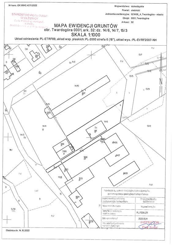- nieruchomości, której właścicielem jest Rydzyński Dariusz położonej przy Długa ., 56-416 Twardogóra, dla której Sąd Rejonowy w Oleśnicy V Wydział Ksiąg Wieczystych (adres: ul. Długa , Twardogóra, 56-416 Twardogóra) prowadzi księgę wieczystą o numerze WR1E/00103694/7.