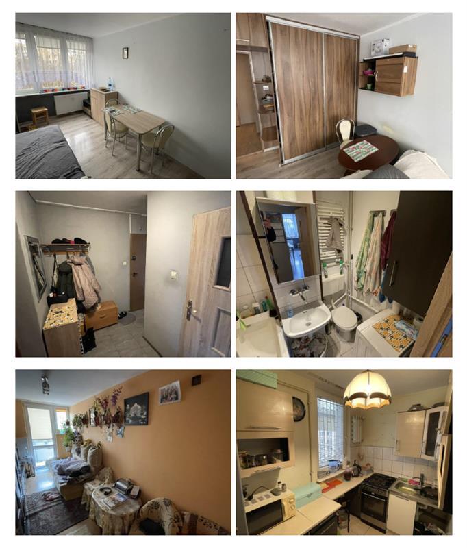 Udział w wys. 1/6 w lokalu mieszkalnym o pow. użytkowej 56 m2, położonym na piątej kondygnacji naziemnej budynku tj. czwartym piętrze i składa się wg. księgi wieczystej z 3 pokoi, kuchni, przedpokoju i łazienki z WC. Do mieszkania przynależy piwnica o powierzchni 3,40 m2. Łączna powierzchnia wynosi 59,40 m2. Lokal mieszkalny w średnim stanie technicznym.
