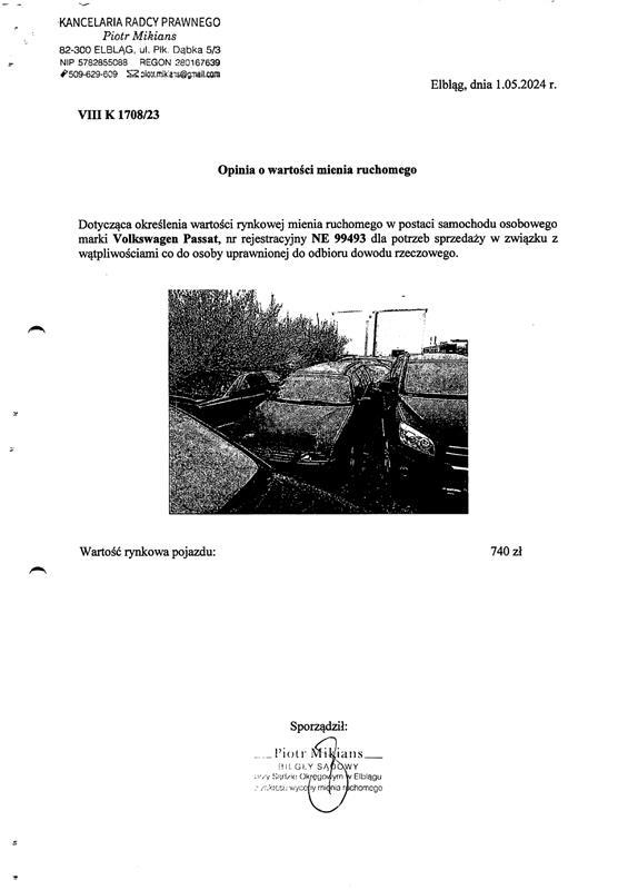 1 | Volkswagen Passat 1995 r. prod. NE99493 wraz z kluczykami | 1 | 740,00 zł | 555,00 zł | 28,00 zł | Elbląg, ul. Radomska, 23c, 82-300, Elbląg. W dniu 24.10.2025 w godzinach od 10:00 do 11:00 |