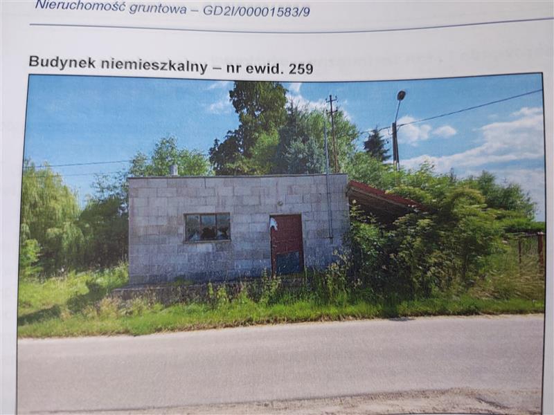 Budynek niemieszkalny – nr ewid. 259 - budynek w zabudowie wolnostojącej, parterowy, niepodpiwniczony, wykonany w technologii tradycyjnej murowanej, z bloczków. Dach płaski, konstrukcji drewnianej. Posadzka betonowa. Stolarka okienna inwentarska, drzwi wejściowe drewniane. Budynek nieużytkowany. Dach obiektu zarwany. Do zachodniej elewacji budynku przylega wiata - dach konstrukcji drewnianej, zadaszony blachą trapezową, wsparty na słupach konstrukcji stalowej.