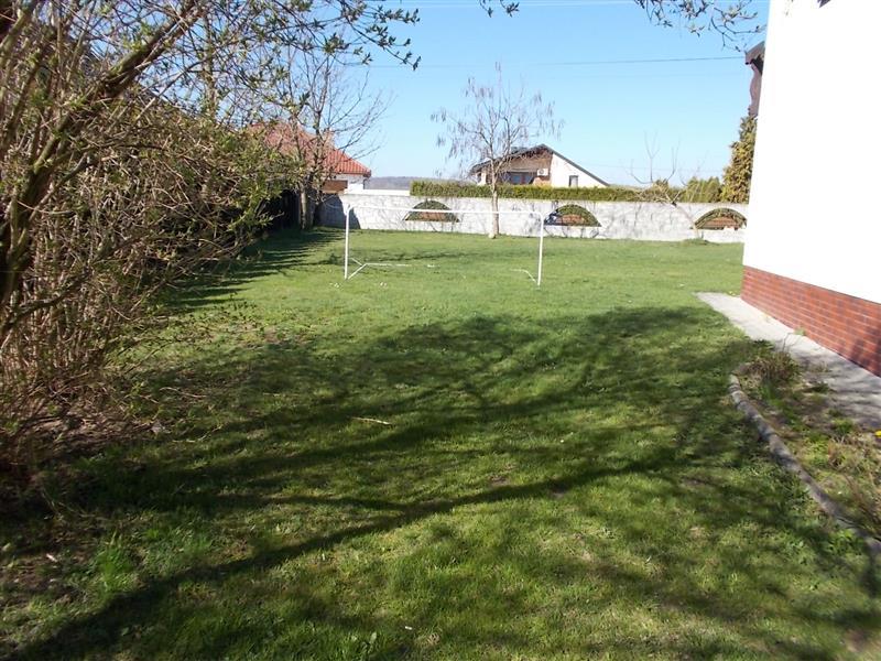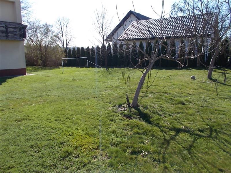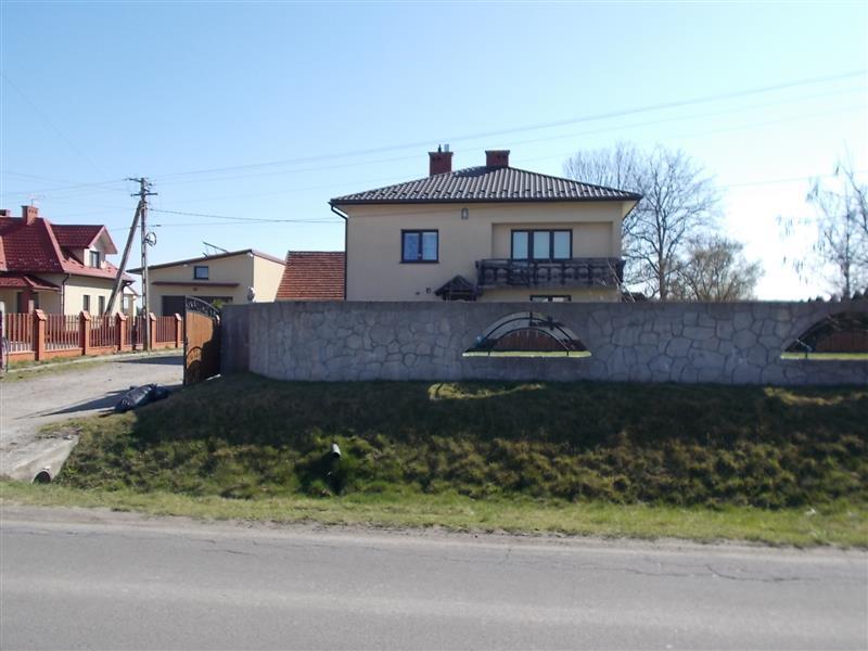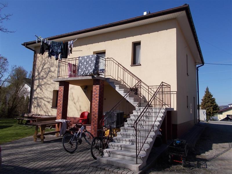 Budynek mieszkalny to obiekt murowany systemem tradycyjnym o dwóch kondygnacjach mieszkalnych i niskim poddaszu. Kondygnacja przyziemia o niższej wysokości wykorzystywana głównie do celów gospodarczych, natomiast kondygnacja piętra, stanowi pełnowymiarową kondygnacje mieszkalną. Budynek nie jest podpiwniczony z zewnątrz jest otynkowany z dachem czterospadowym pokrytym blachą. Wejście główne do budynku zlokalizowane jest od strony wschodniej zarówno w przyziemiu jak i na piętrze. Wykonano od tej strony schody betonowe wykończone masą lastrico. Konstrukcje schodów podparto dodatkowo słupami. Pod konstrukcją schodów ułożono kostkę brukową. Pierwsze dwa stopnie schodów zlokalizowane są na terenie nieruchomości sąsiedniej działki numer 874/9 nie objętej przedmiotowym postępowaniem egzekucyjnym. Wobec tego potencjalny nabywca nieruchomości, nie będzie mógł korzystać z tych schodów bez stosownych dodatkowych uregulowań prawnych. Wewnątrz budynek mieszkalny w całości wykończony i użytkowany. Poziom wykończenia należy określić jako typowy. Na posadzkach w zależności od pomieszczenia ułożono płytki ceramiczne, bądź w pokojach panele podłogowe. Na ścianach w kuchni przy zlewozmywaku i kuchence część ścian wyłożona glazurą. Podobnie pomieszczenia sanitarne wykończono płytkami ceramicznymi. Pokoje głównie malowane farbą dekoracyjną. W pomieszczeniu gospodarczym oraz korytarzu ściany wyłożono panelami ściennymi drewnopodobnymi. Sufity częściowo wykończone panelami PCV, a częściowo malowane. Obiekt ogrzewany z pieca węglowego bądź gazowego. Ciepła woda z zasobnika CWU. Parametry techniczne budynku mieszkalnego: orientacyjne wymiary sprowadzone do kształtu prostokąta: ok. 10,50x9,40m; powierzchnia zabudowy według kartoteki budynków: 99,00m2; oszacowana powierzchnia użytkowa: 158,40m2; kubatura brutto: 564m3;