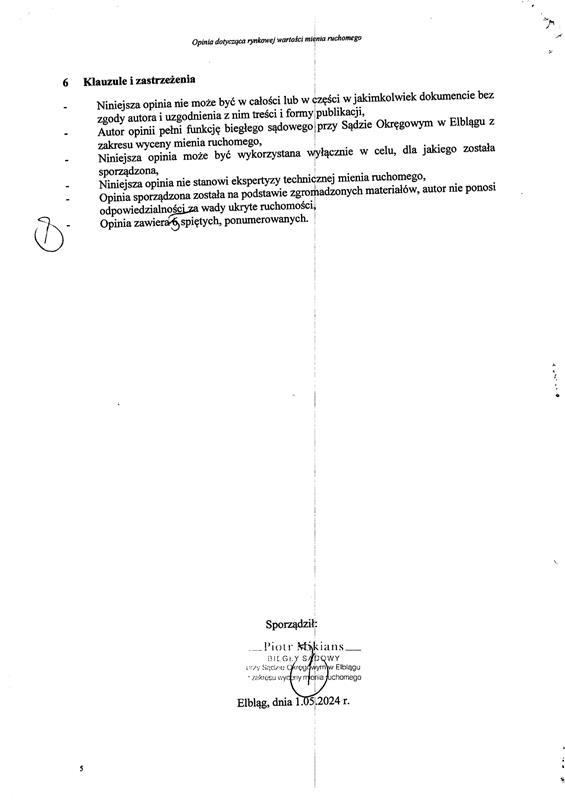 Komornik Sądowy przy Sądzie Rejonowym w Elblągu Tomasz Marszycki podaje do publicznej wiadomości, że w dniu 24-10-2025 o godz. 12:45 w kancelarii komornika odbędzie się w trybie ustalonym w art. 867 ustawą z dnia 17 listopada 1964 r. Kodeks postępowania cywilnego (dalej: kpc) pierwsza licytacja ruchomości składających się z: