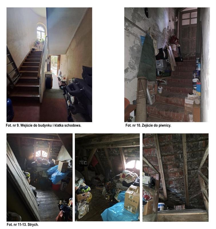 Budynek, w którym znajduje się przedmiotowy lokal jest budynkiem mieszkalnym (dwa lokale mieszkalne) przedwojennym. Rok budowy budynku 1890. Budynek dwukondygnacyjny, podpiwniczony, z poddaszem użytkowym w zabudowie wolnostojącej. Budynek o relatywnie niskim standardzie wykonania części wspólnych wewnątrz i na zewnątrz. Budynek nie posiada windy. Klatka schodowa o wykończeniu drewnianym. Dach o pokryciu dachówką ceramiczną. Stolarka okienna zróżnicowana. Drzwi wejściowe drewniane masywne.