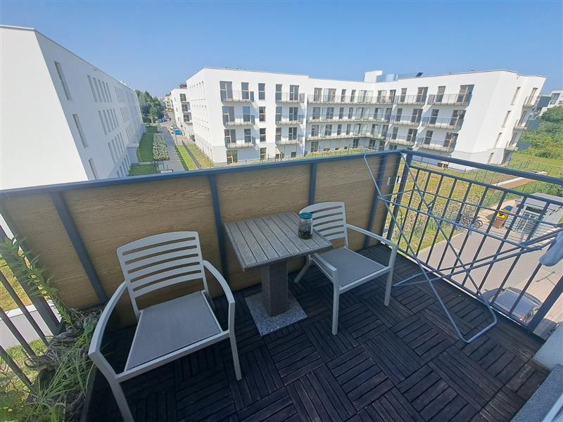 Lokal usytuowany na IV kondygnacji mieszkalnej (III piętro). Układ: salon z aneksem kuchennym, dwa pokoje, łazienka, przedpokój. Powierzchnia użytkowa: 50,23 m². Dwustronny – ekspozycja: salon z aneksem na zachód (z balkonem), pokoje drugiej strony na północ.