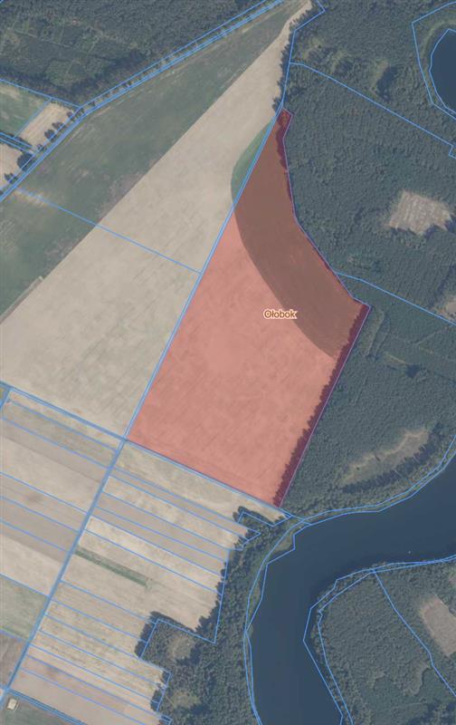 Działka o pow. 25.9021 ha. Nieruchomość niezabudowana gruntowa, rolna, położona w miejscowości Ołobok. Do nieruchomości gruntowej dostęp od drogi utwardzonej. Działka położna jest w kompleksie innych gruntów rolnych w pobliżu lasu, na obrzeżach wsi, z dala od zabudowań, prawie sąsiaduje z jeziorem (80m). Działka ma nieregularny kształt, jest użytkowana zgodnie z jej przeznaczeniem na cele rolne. Działka dzieli się na klasy użytku: R IIIa (2.5800 ha), R IIIb (4.9900 ha), R IVa (8.6429 ha), R IVb (1.6100 ha), R V (4.3800 ha), R VI (3.5400 ha), LsV (0.0200 ha), Lz-RVI (0.1392 ha).