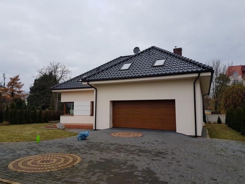 dach - konstrukcji drewnianej pokryty dachówką cementową. Rynny i rury spustowe wykonane z profili PCV;