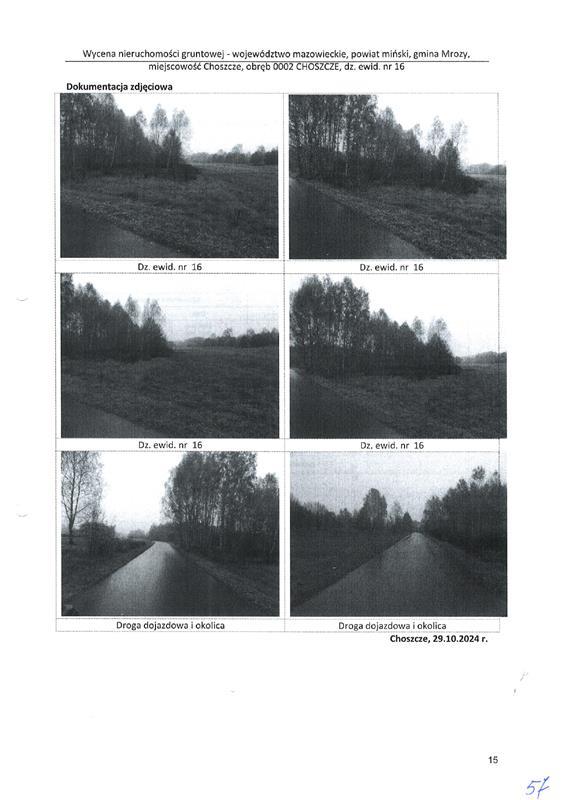 Działka ew. nr 16, obręb 0002 Choszcze o pow. 9 079m2. Nieruchomość niezabudowana, nieogrodzona, stanowi teren rolniczy porośnięty jest niską oraz wysoką roślinnością samosiewną. Działka bez dostępu do mediów. W odległości ok 1 100m od działki zlokalizowana jest stacja kolejki PKP Grodziszcze Mazowieckie. Działka posiada dostęp do ciągu komunikacyjnego - droga dojazdowa asfaltowa. Dla nieruchomości został uchwalony nr XX/105/04 Rady Gminy Mrozy z dnia 18 maja 2004 miejscowy plan ogólny zagospodarowania przestrzennego wsi Mrozy i gminy Mrozy. Nieruchomość o przeznaczeniu gospodarczym - strefa MPZP R - tereny rolniczej przestrzeni produkcyjnej.