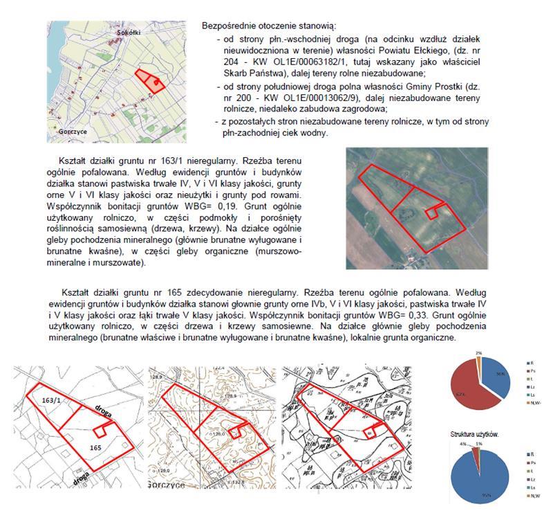 Przedmiotem licytacji jest nieruchomość gruntowa niezabudowana, położona w woj. warmińsko-mazurskim, powiecie ełckim, na terenie gminy Prostki, obrębie Gorczyce, dla której Sąd Rejonowy w Ełku prowadzi księgę wieczystą nr KW OL1E/00022093/1, w zakresie prawa własności działki gruntu nr 163/1 o pow. 3,4700 ha oraz działki gruntu nr 165 o pow. 6,7400 ha.