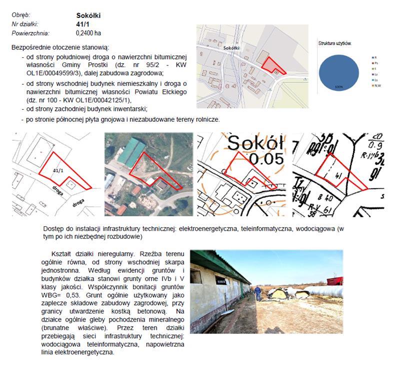 - nieruchomości położonej przy .,Sokółki, 19-335 Prostki, dla której Sąd Rejonowy w Ełku V Wydział Ksiąg Wieczystych (adres: ul. Konopnickiej 4, Ełk, 19-300 Ełk) prowadzi księgę wieczystą o numerze OL1E/00039515/8.