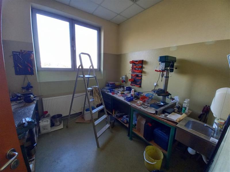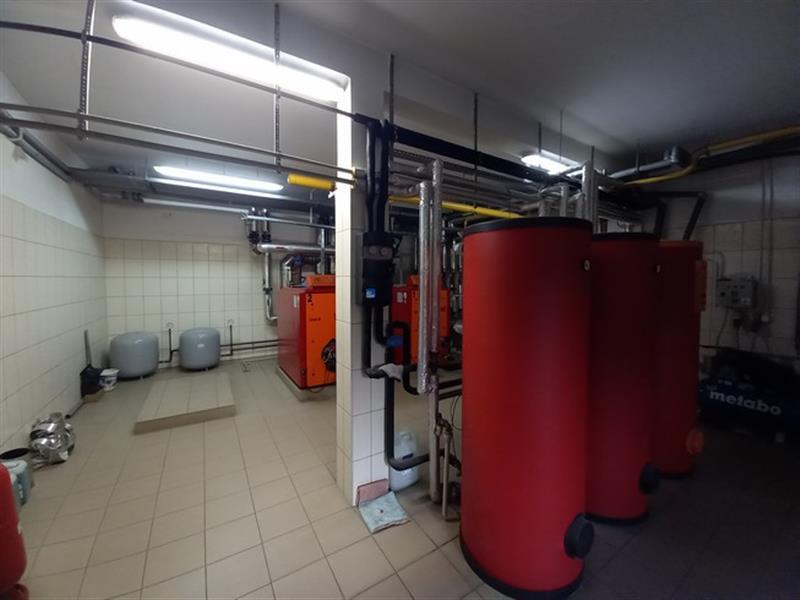 W budynku instalacje: wodna, kanalizacyjna (na działce nr 244/2 zbiornik oczyszczalni ścieków, z którego jak ustalono od właściciela nieruchomości korzysta kilka budynków mieszkalnych jednorodzinnych znajdujących się w sąsiedztwie), elektryczna, siły, gazowa, wentylacji mechanicznej, centrala wentylacji z możliwością chłodzenia i grzania, ogrzewanie c.o. z dwóch pieców gazowych (każdy pracujący indywidualnie, możliwość podpięcia trzeciego kotła), solarna do ogrzewania wody, uzdatniana wody, sprężonego powietrza, alarmowa, monitoring, teletechniczna, komputerowa, sygnalizacji pożarowej. Budynek w dobrym stanie technicznym i podstawowym standardzie wykończenia, przystosowany do prowadzenia działalności gospodarczej produkcji makaronów. Wymaga częściowych remontów bieżących. Powierzchnia użytkowa budynku wynosi: 1 889,40 m2.