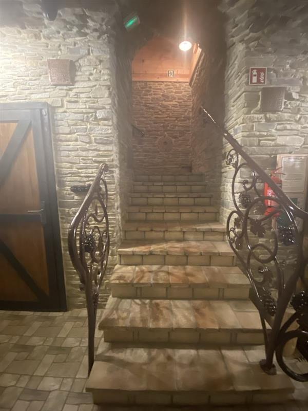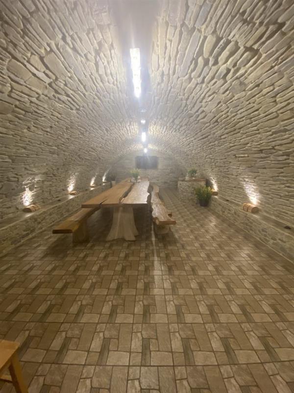 Piwnica budynku w konstrukcji murowanej, zachowano kamienne mury i łuki o charakterze