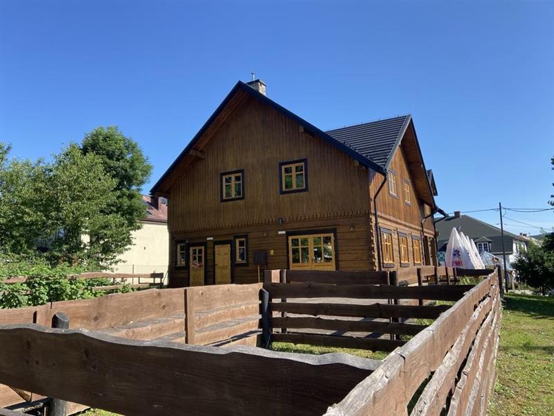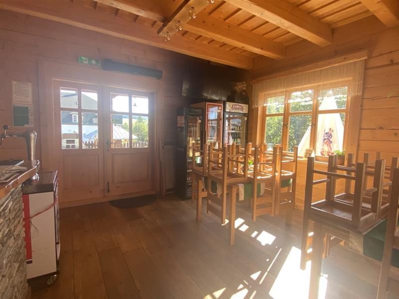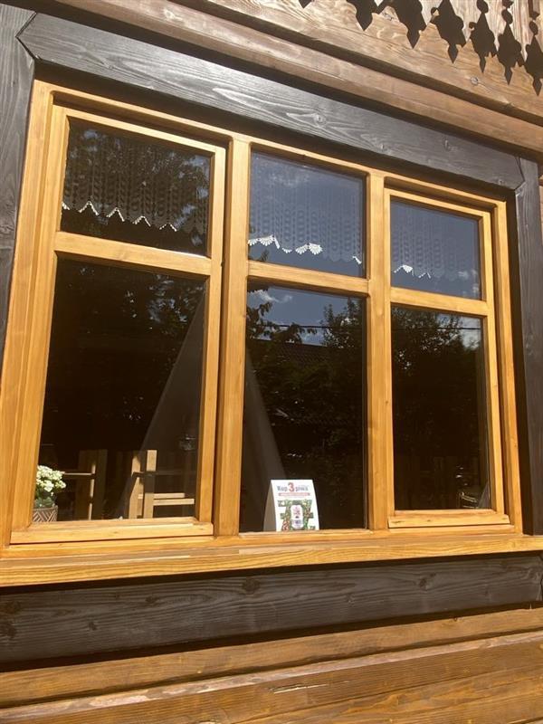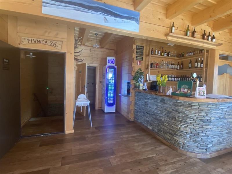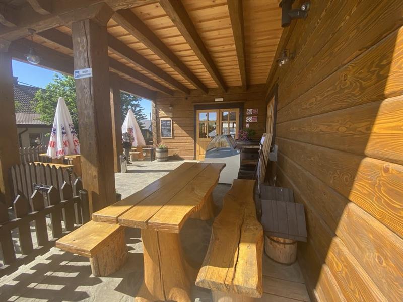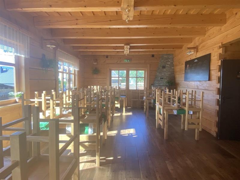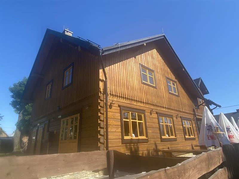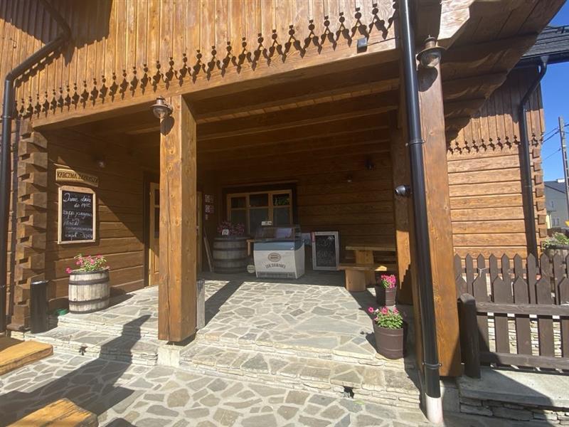 historycznym. Parter i poddasze budynku wykonano w konstrukcji drewnianej, z bali. Usztywnienie budynku stanowią ściany zewnętrzne i wewnętrzne nośne wraz z wieńcami wieńczącymi kondygnacje piwnic. Strop nad piwnicą żelbetowy, nad parterem drewniany, nad poddaszem drewniany stanowiący połączenie z elementami więźby dachowej. Dach wielospadowy o kącie nachylenia 38°. Konstrukcja dachu tradycyjna, drewniana, krokwiowo – płatwiowa. Schody wewnętrzne do piwnic i zewnętrzne wylewane żelbetowe. Brak schodów na poddasze. Elewacja z drewna naturalnego, dach z gontu w kolorze brązowym. Rynny i rury spustowe z tworzywa sztucznego, obróbki blacharskie z blachy powlekanej w kolorze brązowym. Stolarka okienna drewniana w kolorze brązowym. Drzwi wewnętrzne typowe, płytowe. W XVI wiecznej piwnicy o powierzchni ok. 65 m² mieści się sala konsumpcyjna, toaleta. Zachowano kamienne mury i łuki o charakterze historycznym. Podłogi w Sali restauracyjnej i konsumpcyjnej wyłożone gresem szkliwionym i kamieniem podłogowym. Ściany i sufit sali restauracyjnej wyłożone drewnem. W restauracji tradycyjny kominek. Ściany i podłogi pomieszczeń zaplecza wyłożono płytkami ceramicznymi.