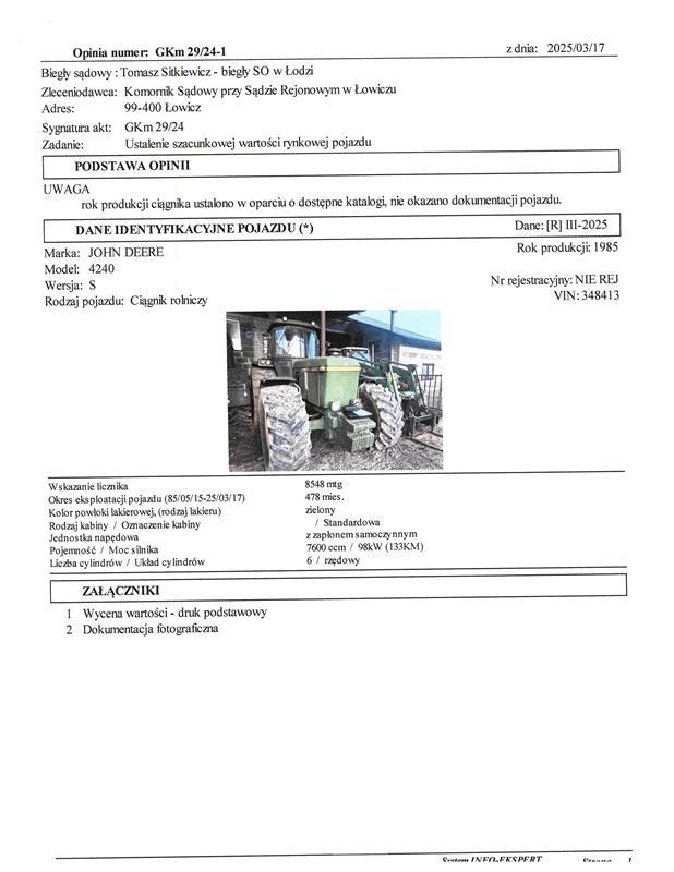 4 | CIĄGNIK ROLNICZY JOHN DEERE 4240 | 1 | 29 593,50 zł | 22 195,13 zł | 1 110,00 zł |