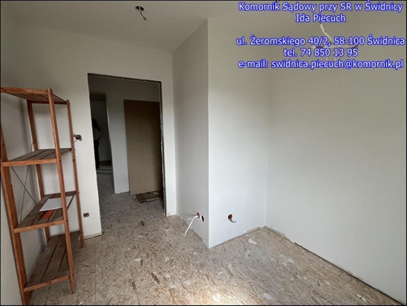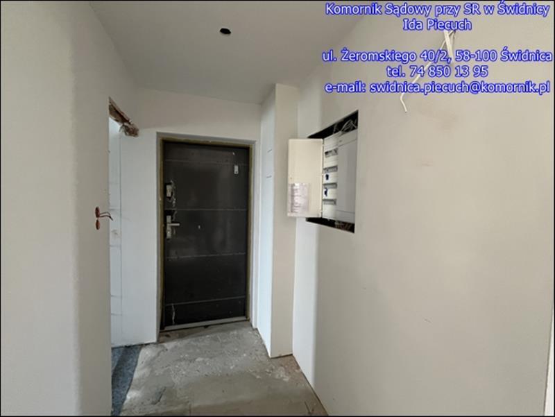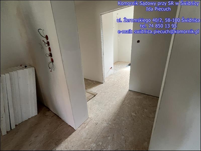 kondygnacjach nadziemnych, 1 kondygnacji podziemnej). Wejście do lokalu dostępne bezpośrednio z klatki schodowej. Lokal według zapisów w Księdze Wieczystej oraz według stanu faktycznego, co stwierdzono w dniu wizji, składa się z 3 pokoi, kuchni, przedpokoju oraz łazienki. Lokal w trakcie kapitalnego remontu. Drzwi wejściowe nowego typu - antywłamaniowe, drzwi wewnętrznych brak. Okna PCV trzyszybowe. Podłogi wyłożone płytami pilśniowymi -przegotowane pod okładziny podłogowe. Sufity podwieszane bez opraw oświetleniowych. Ściany mają wykonane gładzie. Rozpoczęty został remont łazienki. Lokal obecnie nie jest zamieszkiwany. Przyłączony do sieci wodnej, kanalizacyjnej, energetycznej i gazowej. Pieca brak (zaplanowano piec gazowy dwufunkcyjny). Ogólny stan techniczny i standard wykończenia lokalu oceniono jako średni. Dla lokalu nie sporządzono Świadectwa Charakterystyki Energetycznej. Stopień zużycia budynku około 25%. Budynek nie ujęty w wykazie zabytków powiatu świdnickiego, nie wpisany do rejestru zabytków. Nie ujęty w Gminnej Ewidencji Zabytków. Działka nr ew. 1418 o obszarze 0,0204 ha, położona jest przy ulicy Warszawskiej, uzbrojona jest w sieć wodociągową, kanalizacyjną, energetyczną, gazową i teleinformatyczną. Nieruchomość posiada pośredni dostęp do drogi publicznej. Dojazd odbywa się od strony zachodniej poprzez dz. nr ew. 1417 należącą do Gminy, następnie do dz. nr ew. 1414