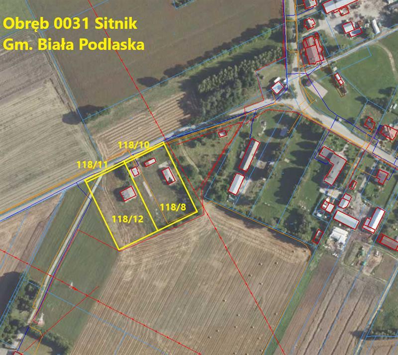 dz. ewid. nr 118/8 o pow. 0,4349ha (grunty rolne zabudowane Br-RIVb-0,2537ha, grunty orne RIVb-0,1812ha) oraz nieruchomości oznaczonej dz. ewid. nr 118/10 o pow. 0,0100ha (grunty rolne zabudowane Br-RIVb-0100ha), poł. w msc. Sitnik 49 w gminie Biała Podlaska, kw nr LU1B/00097249/4. Dz. nr 118/8 i 118/10 stanowią zabudowaną zorganizowaną całość gospodarczą, wobec powyższego sprzedaż tych działek nastąpi łącznie (własność dłużnika: Adamiuk Krzysztof)