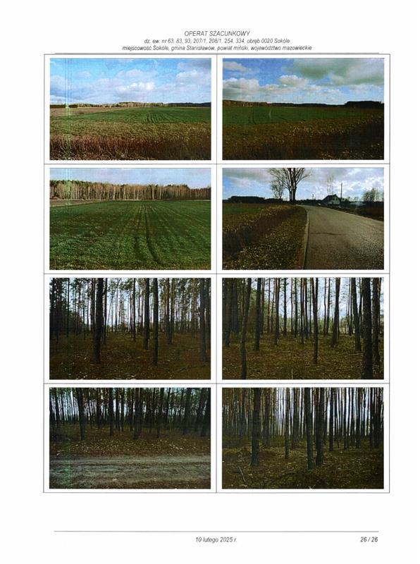 Nieruchomość gruntowa oznaczona w ewidencji gruntów jako działka ewidencyjna nr 63, 83, 93, 207/1, 208/1, 254, 334 o łącznej powierzchni 51 589 m2, położona w miejscowości Sokóle, fina Stanisławów, powiat miński, województwo mazowieckie.