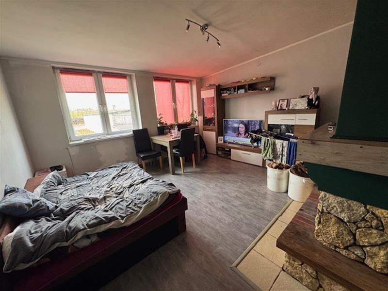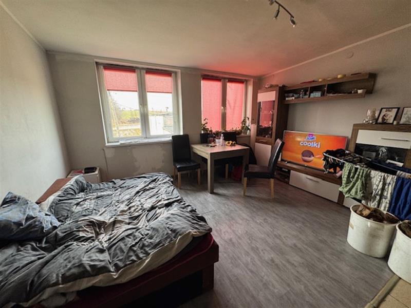 prawo własności lokalu mieszkalnego o powierzchni użytkowej 53,50 m2 wraz z udziałem w częściach wspólnych budynku oraz prawem własności gruntu na działce ew. nr 4/3, obręb 0011 Wodynia, w udziale 23/100 nr KW EL1E/00040680/5. Lokal mieszkalny znajduje się na 2 kondygnacji nadziemnej tj. na pierwszym piętrze budynku wielorodzinnego ukończonego w 1985r. - nieruchomość ma zapewniony bezpośredni dostęp do drogi publicznej na działce nr 20 – pas o nawierzchni asfaltowej. Lokal składa się z 2 pokoi, kuchni, łazienki i przedpokoju. Do lokalu przynależy pomieszczenie piwniczne o powierzchni 8,15 m2. Stan techniczny lokalu mieszkalnego średni, standard wykończenia średni. Wykończenie lokalu: tynki wewnętrzne cementowowapienne, ściany malowane, w kuchni miejscowo wyłożone panelami typu siding, nad rzędem szafek kuchennych - glazura. W łazience i w kuchni na podłodze terakota, w pokojach, przedpokoju – panele MDF. Stolarka okienna PCV, drzwi płytowe. Normatywna wysokość pomieszczeń. Łazienka jest po remoncie. Lokal ogrzewany kominkiem który znajduje się w dużym pokoju, brak kaloryferów. Ciepła woda z przepływowego podgrzewacza wody.