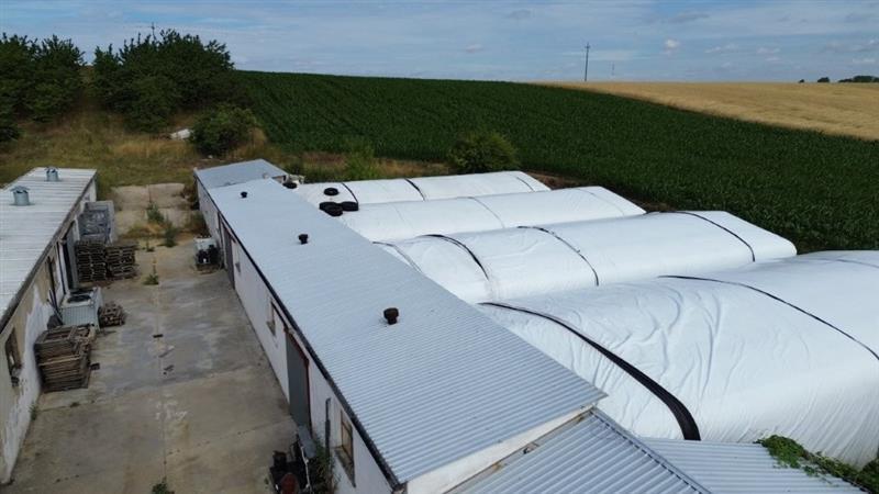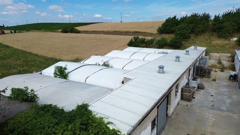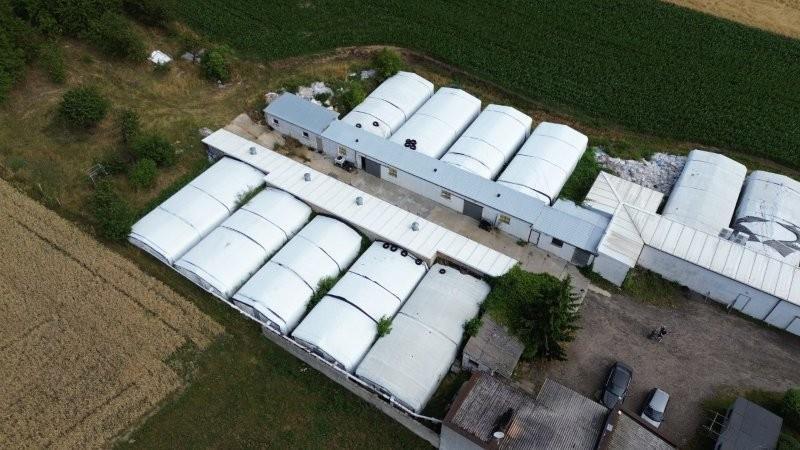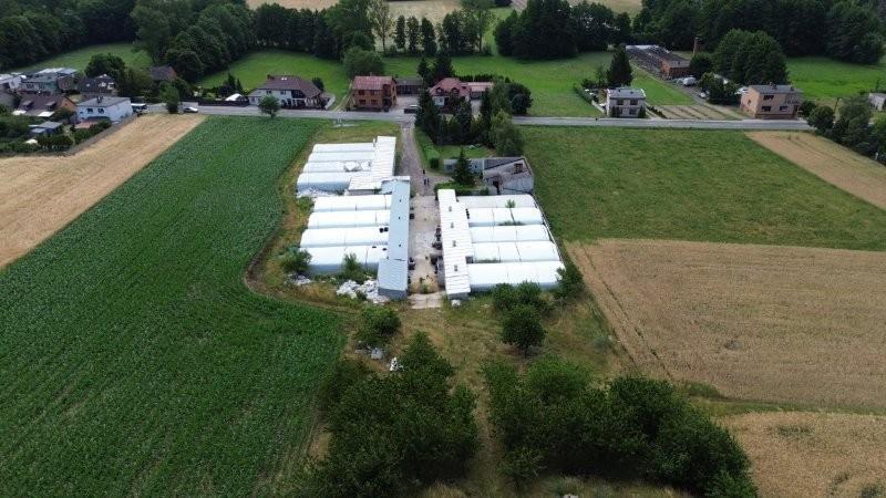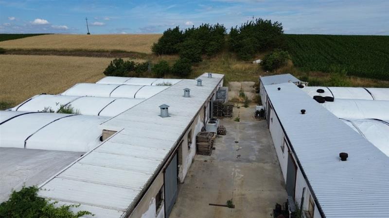 prawo własności nieruchomości gruntowych zabudowanych murowanym budynkiem mieszkalnym jednorodzinnym wolnostojącym o powierzchni 93,43m2 oraz kompleksem murowanych budynków gospodarczych o łącznej powierzchni 449,36m2 do których przynależą klimatyzowane tunele foliowe (12 szt.)wykorzystywane w uprawie pieczarki i innych grzybów o łącznej powierzchni tuneli przyjętej jako 50% - 561,76m2; na nieruchomości tworzących funkcjonalną całość będącej przedmiotem licytacji składają się: