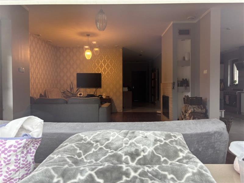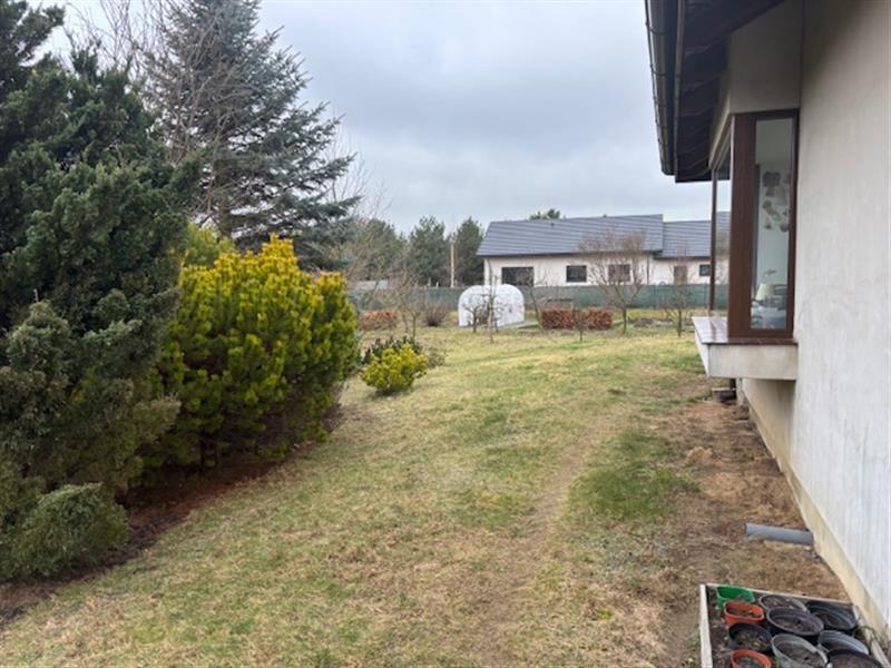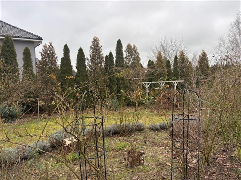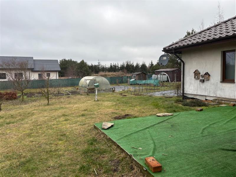 Przedmiotem licytacji jest ułamkowa część (udział 1/2 części) nieruchomości gruntowej, na którą składa się działka gruntu nr 2016/4 o pow. 0,3002 ha. Kształt działki zbliżony do kwadratu. Konfiguracja terenu płaska. Płot z siatki metalowej z metalową, przesuwną bramą i furtką. Podjazd do garażu i do drzwi wejściowych utwardzony kostką betonową. Urządzony ogród z drzewami i krzewami ozdobnymi, trawniki a także warzywnik z foliowym tunelem. Działka zabudowana budynkiem mieszkalnym z 2008 r., jednorodzinnym, wolnostojącym, parterowym ze strychem, częściowo podpiwniczonym o pow. użytkowej 174,00 m2 i pow. zabudowy z tarasami 225,20 m2. Budynek murowany w technologii tradycyjnej na fundamentach z ław żelbetowych i ścianach fundamentowych murowanych z bloczków betonowych. Ściany zewnętrzne murowane z pustaka gazobetonowego, styropian o grubości 10 cm. Ściany kominowe murowane z cegły ceramicznej. Nadproża prefabrykowane, wieniec i strop żelbetowe. Dach o konstrukcji drewnianej, ocieplenie z wełny mineralnej, pokryty dachówką ceramiczną. Stolarka drzwiowa drewniana. Stolarka okienna PCV. Brama garażowa automatyczna na pilota. Dostępne instalacje: energetyczna, wodociągowa i kanalizacyjna (przydomowa oczyszczalnia ścieków, instalacja kanalizacji deszczowej z wkopanym w ziemię betonowym zbiornikiem 3000 l), centralne ogrzewanie (podłogowe w korytarzu, wiatrołapie, salonie, kuchni i łazienkach). piec na ekogroszek, rekuperacja - urządzenie zlokalizowane w piwnicy. Układ funkcjonalny: wiatrołap, korytarz, 2 łazienki, kuchnia, salon z jadalnią, 3 pokoje, garaż. Podłogi w salonie z jadalnią i pokojach panele, a w pozostałych pomieszczeniach płytki ceramiczne. Ściany w łazienkach obłożone płytkami ceramicznymi, a w pozostałych pomieszczeniach malowane farbą emulsyjną. W salonie z jadalnią w kuchni i w korytarzu tapeta ścienna na jednej ścianie. W pokojach zabudowa meblowa na wymiar, w salonie kominek, w łazienkach misy wc, umywalki, kabina prysznicowa i wanna.