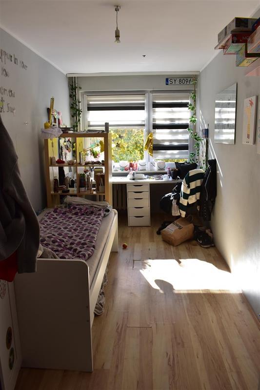 następujące instalacje: elektryczną, wodnokanalizacyjną, gazową, domofon. Ogrzewane jest centralnym ogrzewaniem zasilanym z sieci miejskiej (grzejniki żeliwne), ciepła woda użytkowa również z sieci miejskiej. Standard wykończenia mieszkania: • podłogi wyłożone są panelami (pokoje), kafelkami (kuchnia, łazienka, przedpokój), • ściany pokryte tynkami cementowo-wapiennymi - malowane, w łazience - częściowo kafelki, pomalowane, • stolarka okienna PCV wymieniona około 18 lat temu, • stolarka drzwiowa wejściowa antywłamaniowa, brak drzwi wewnętrznych z wyjątkiem - drzwi do łazienki - płycinowe, częściowo przeszklone, pokrycie ścian podłóg o znacznym stopniu zużycia, • w łazience znajduje się wanna i ubikacja (brak umywalki). Stan techniczny i standard wykończenia mieszkania oceniono jako niekorzystny w odniesieniu do nieruchomości przyjętych do porównań - mieszkanie wymaga przeprowadzenia prac remontowych w szerokim zakresie. W budynku brak windy. Mieszkanie w zasobach Bytomskiej Spółdzielni Mieszkaniowej.