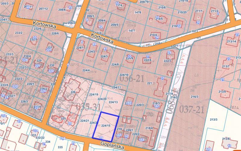 Prawo własności działki nr 224/15 o powierzchni 1.090 m2, niezabudowanej, częściowo utwardzonej kostką betonową.