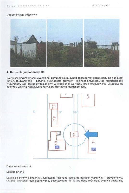 zabudowanej nieruchomości gruntowej, dla której Sąd Rejonowy w Żyrardowie V Wydział Ksiąg Wieczystych prowadzi księgę wieczystą o numerze PL1Z/00028007/3. Ww. nieruchomość jest położona pod adresem Gole 19 w miejscowości Gole, gminie Baranów, powiecie grodziskim, województwie mazowieckim. Nieruchomość o łącznej powierzchni 6000 metrów kwadratowych składa się z działki ewidencyjnej nr 121 o powierzchni 3400 metrów kwadratowych oraz z działki ewidencyjnej nr 246 o powierzchni 2600 metrów kwadratowych. Działka ewidencyjna nr 121 jest zabudowana budynkiem mieszkalnym o powierzchni zabudowy 74 metry kwadratowe, budynkiem gospodarczym o łącznej powierzchni zabudowy 53 metry kwadratowe oraz budynkiem gospodarczym o powierzchni zabudowy 45 metrów kwadratowych, ponadto znajduje się na niej część budynku gospodarczego wzniesionego na sąsiedniej działce. Działka ewidencyjna nr 246 jest niezabudowana. Nieruchomość jest położona na terenie rolnym oraz na terenie zabudowy zagrodowej z dopuszczeniem zabudowy mieszkaniowej jednorodzinnej z podstawowymi usługami dla użyteczności publicznej. Zgodnie z danymi z portalu https://mapy.geoportal.gov.pl nieruchomość znajduje się w sąsiedztwie planowanego Centralnego Portu Komunikacyjnego, natomiast nie jest objęta prawem pierwokupu na rzecz spółki Centralny Portu Komunikacyjny Sp. z o.o. Nieruchomość jest obciążona dożywotnią i bezpłatną służebnością osobistą mieszkania, która będzie utrzymana w mocy po przysądzeniu własności.